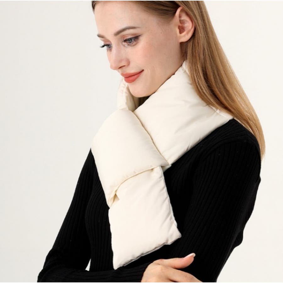 差し込み口にマフラーの先を通すクロスタイプで着脱も簡単です。
