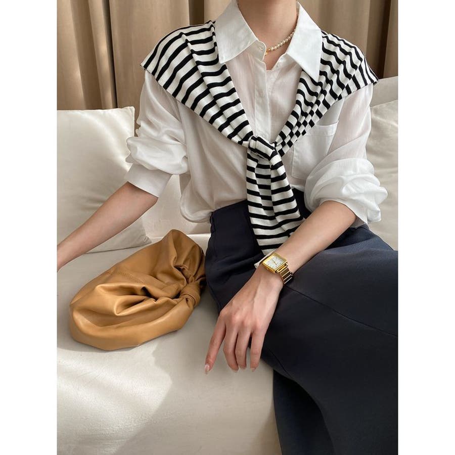 シンプルなシャツやブラウスにプラスするだけでコーデがパッと華やぎます♪