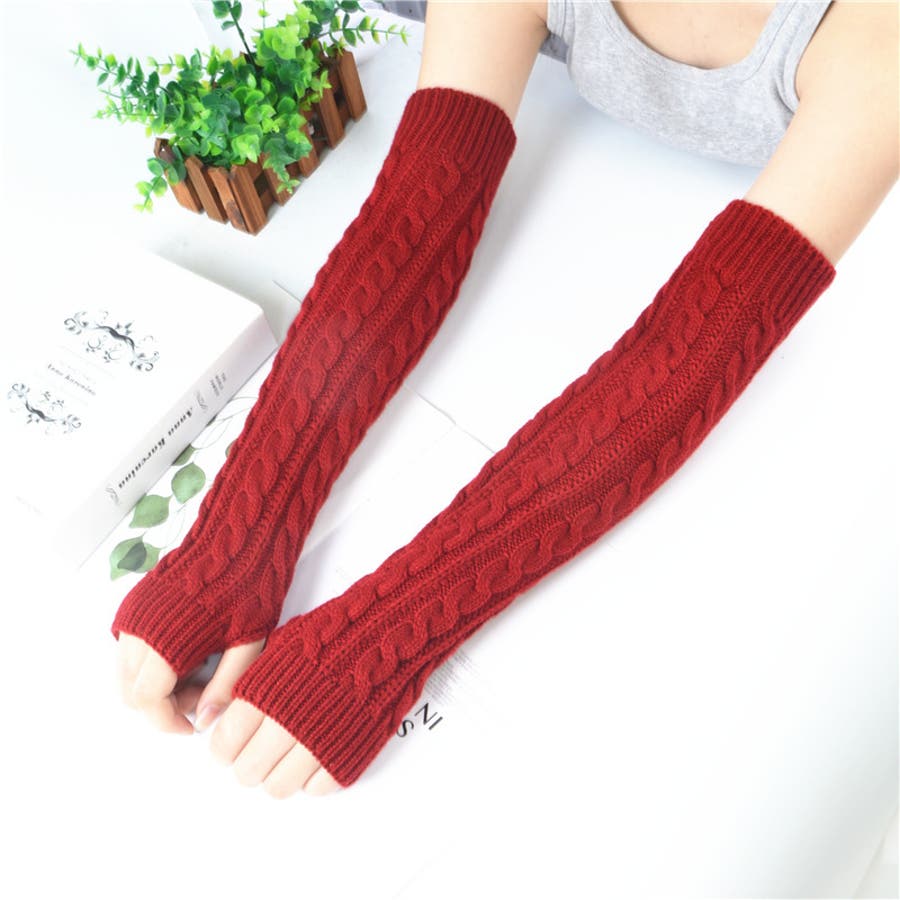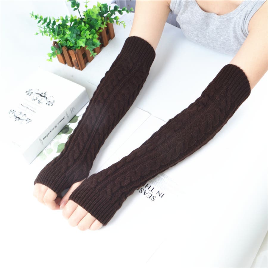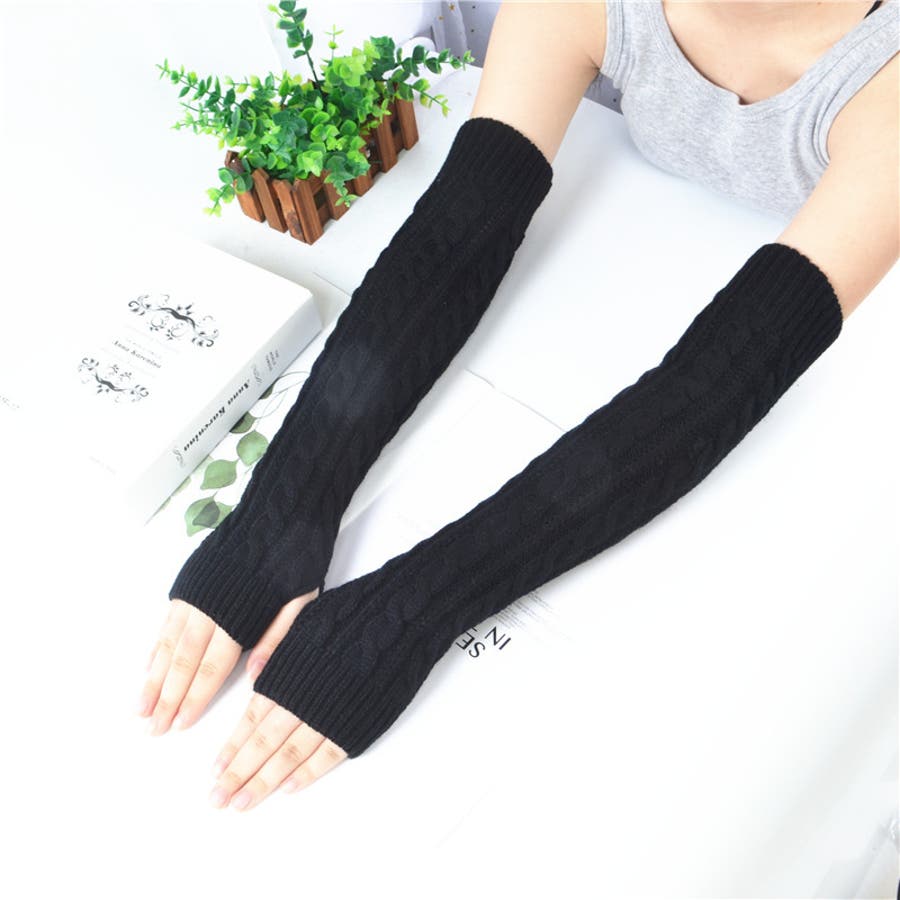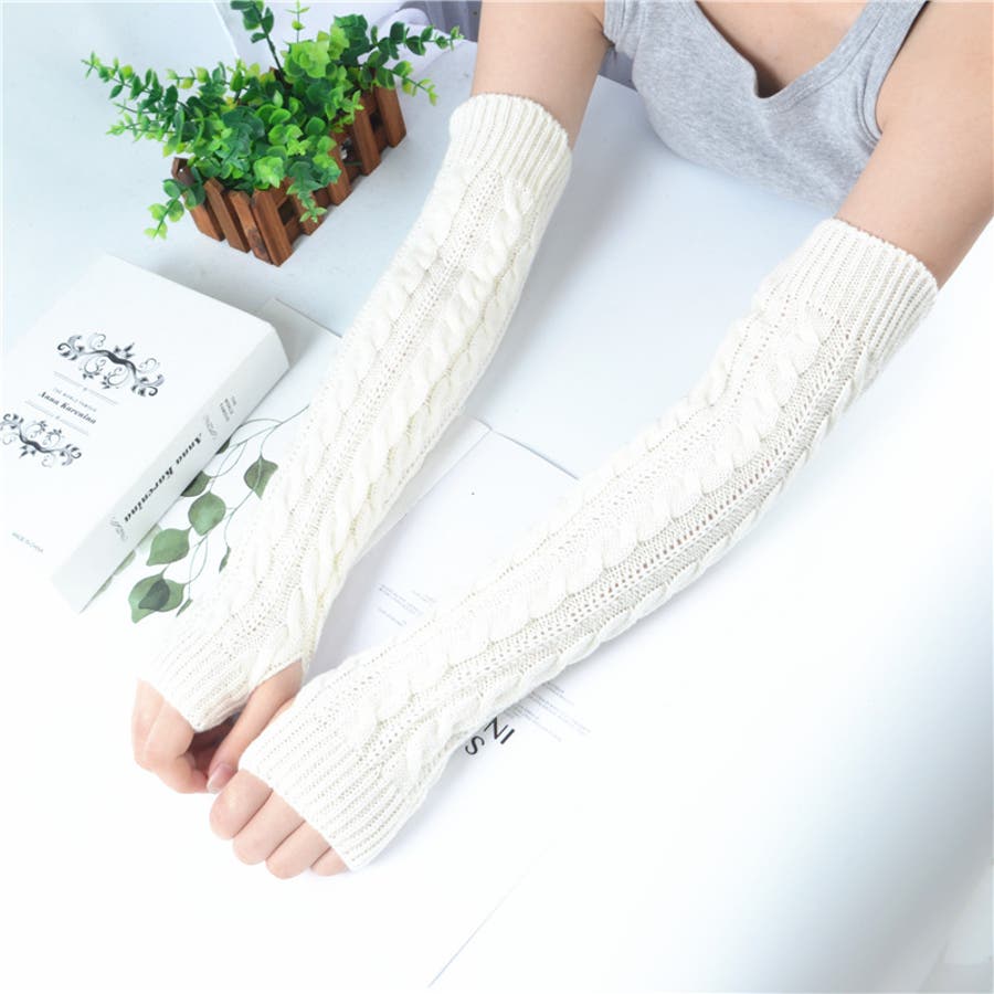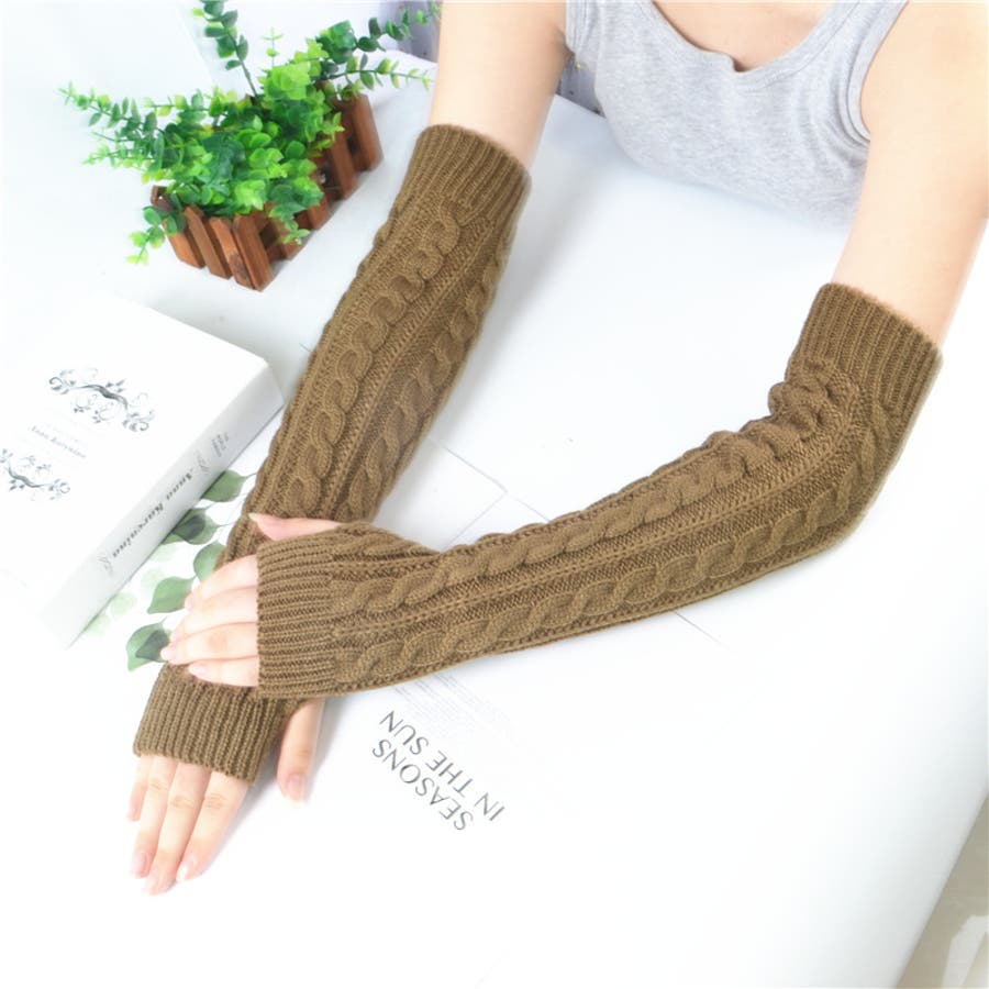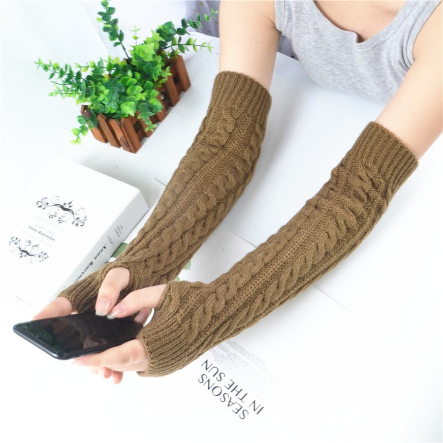 親指用の指穴付きでズレにくく手首まであたたかいのがポイントです。