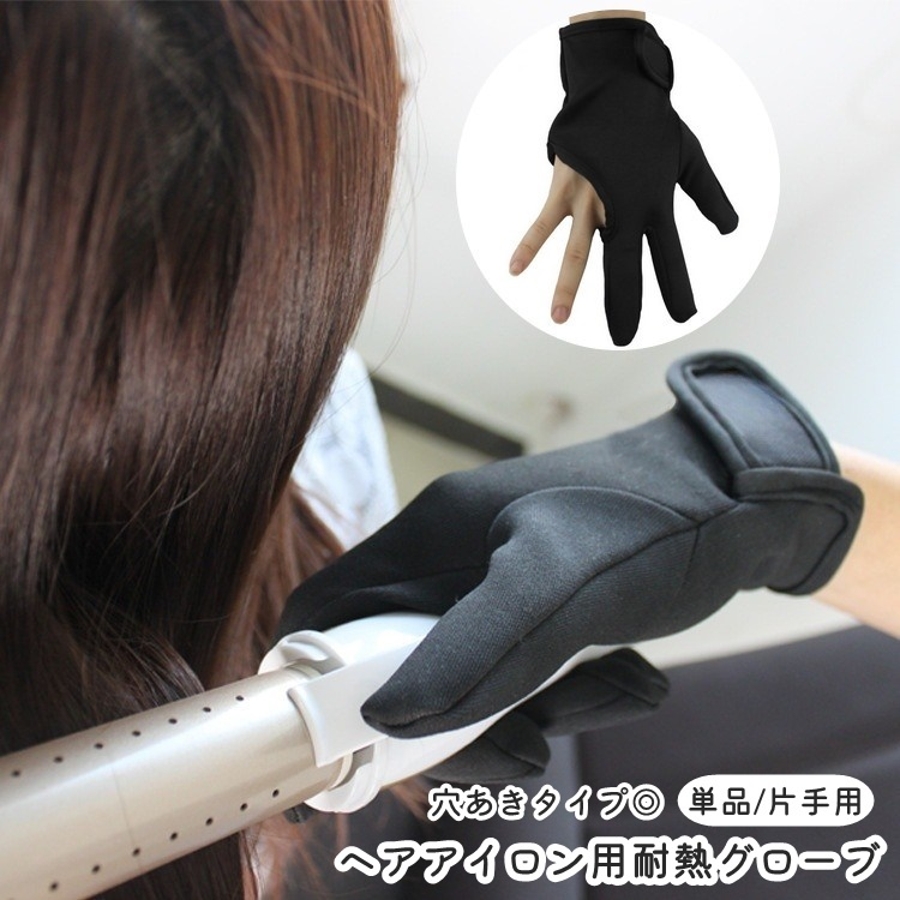 【ブラック】ヘアアイロン用耐熱グローブ 3本指 穴あき