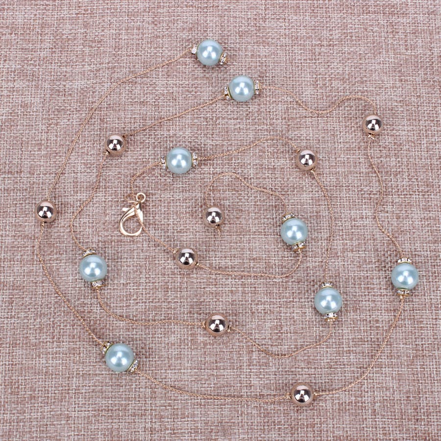 長さは普通体型の方なら画像と同じくらいか、少し短い程度でチェーンを垂らして使えそうです。