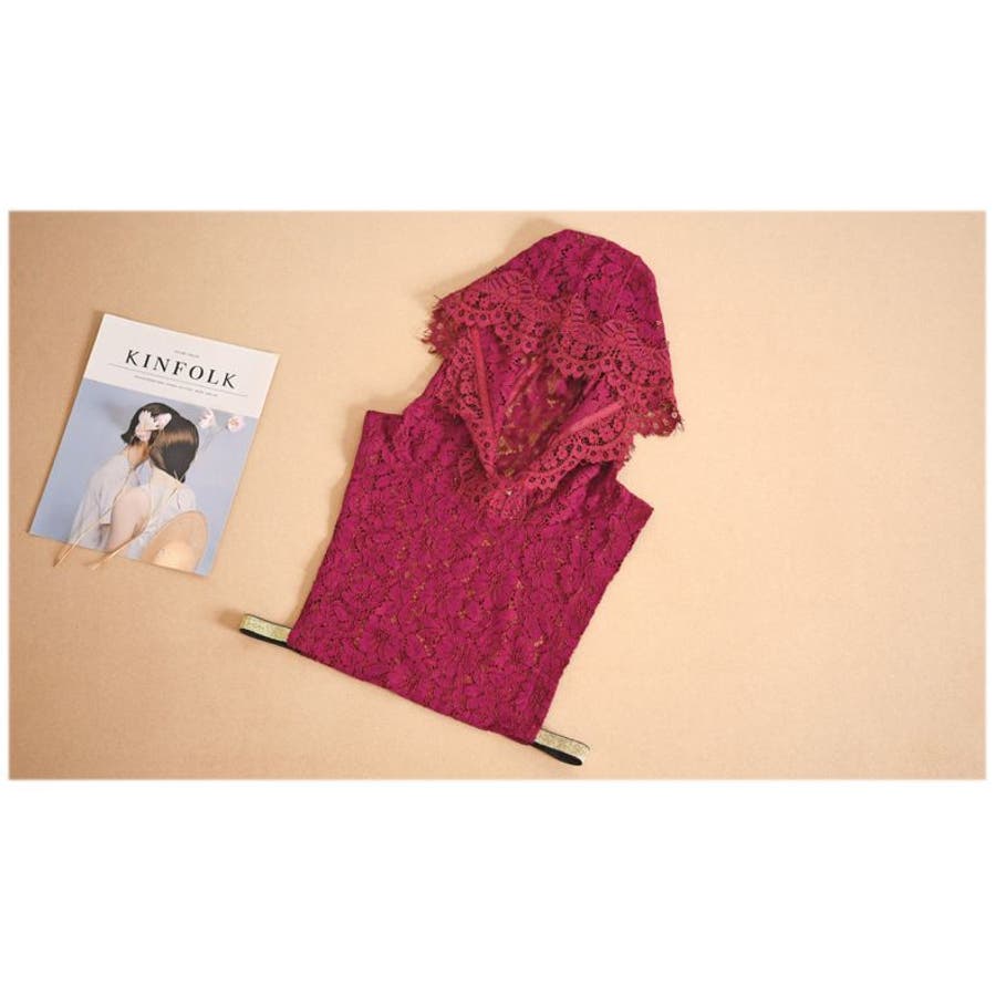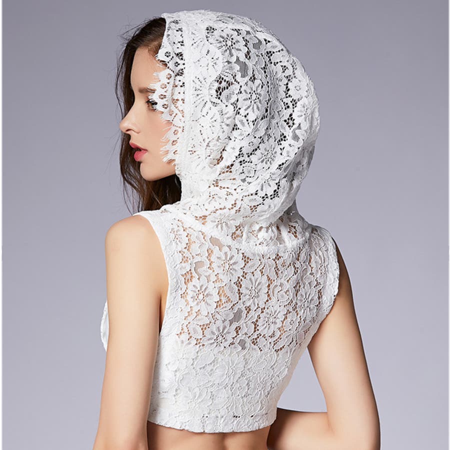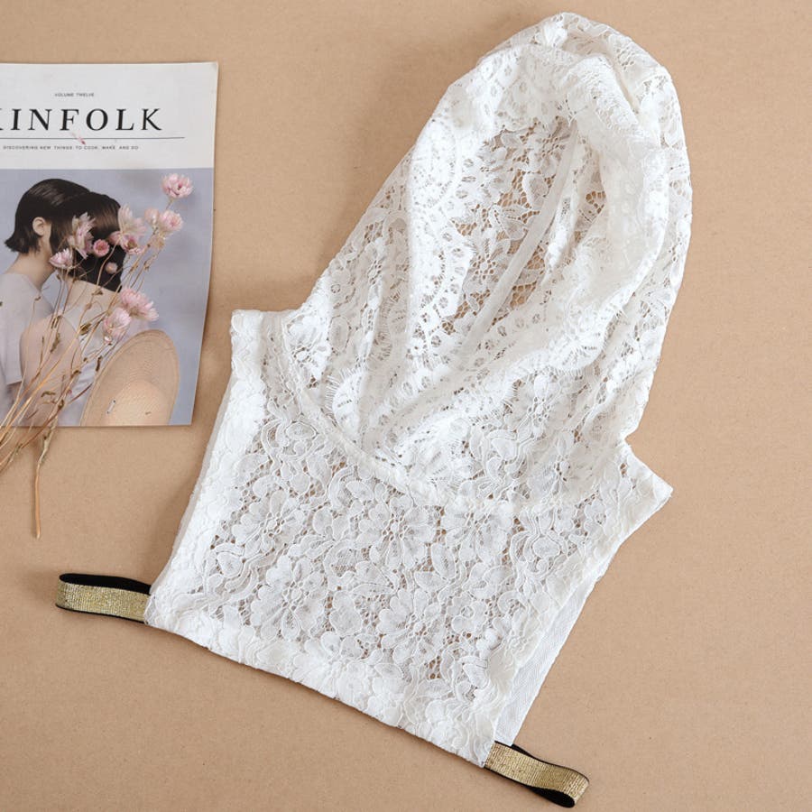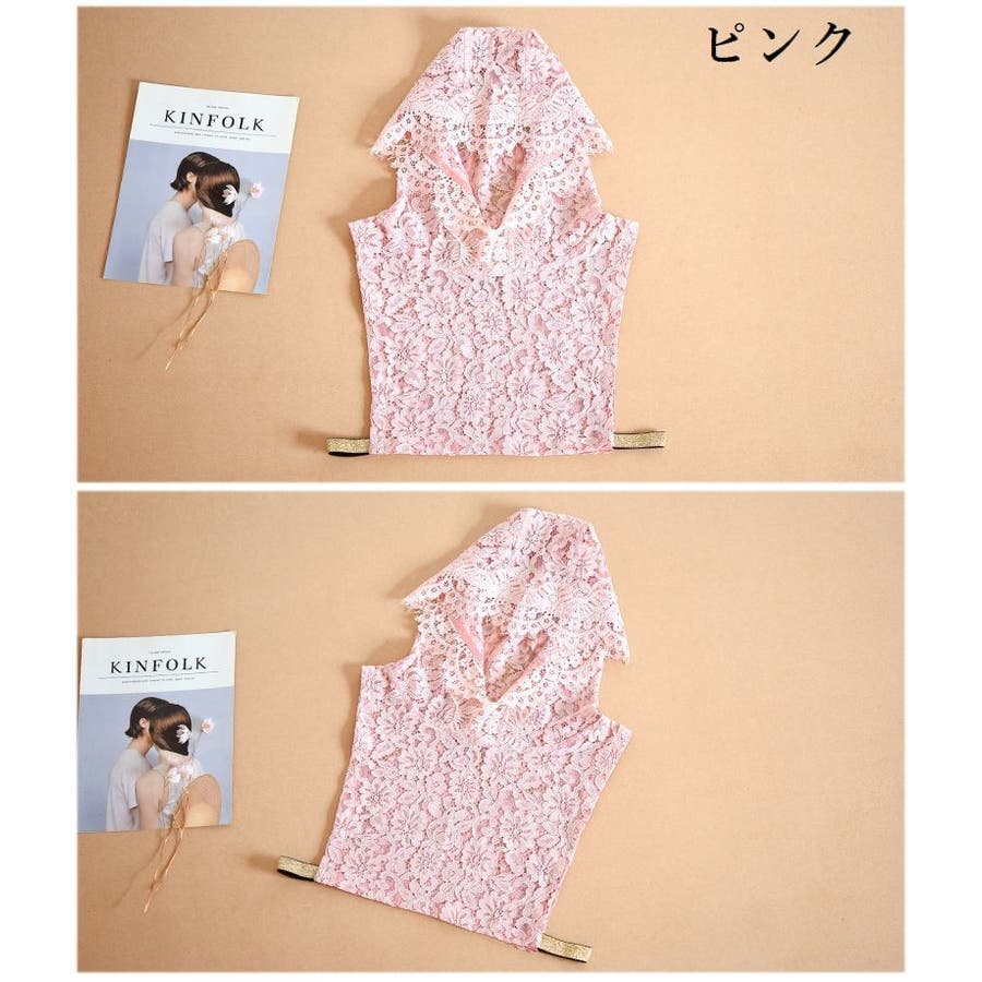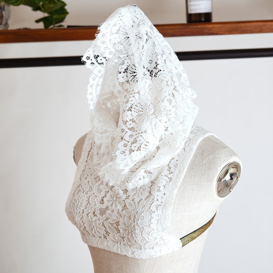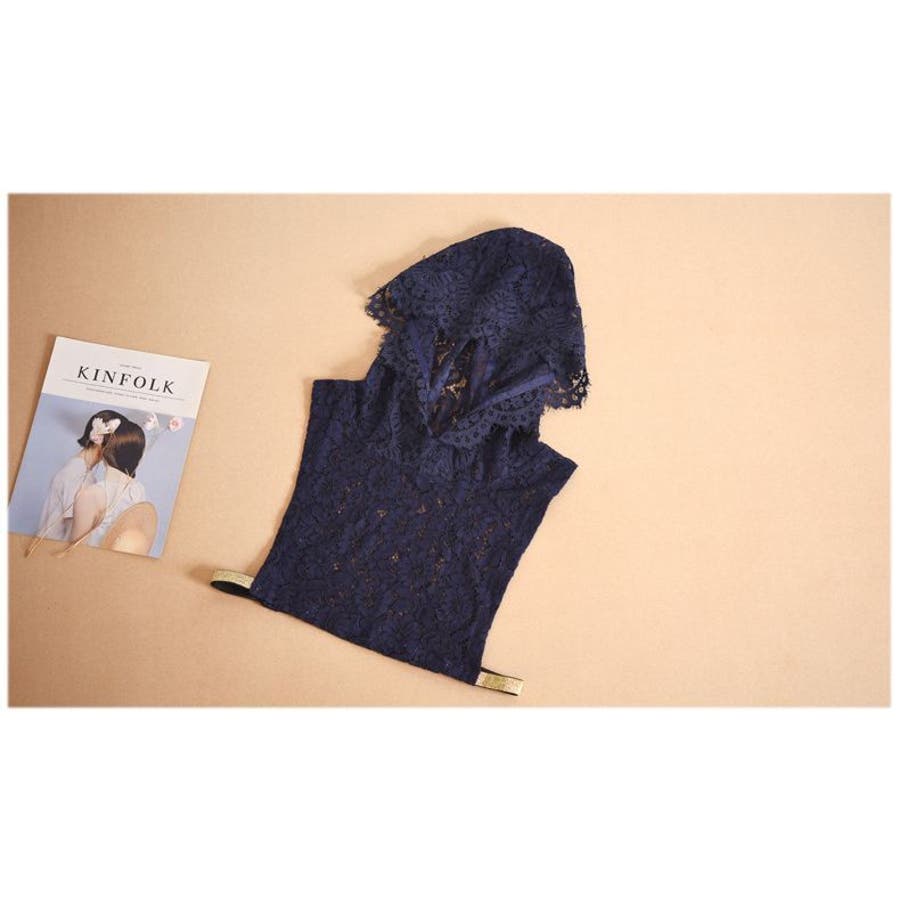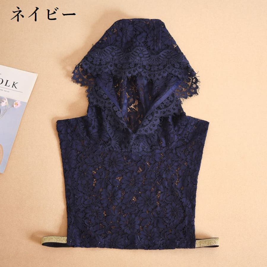 レースの透け感がおしゃれなフード付きのつけ襟です。