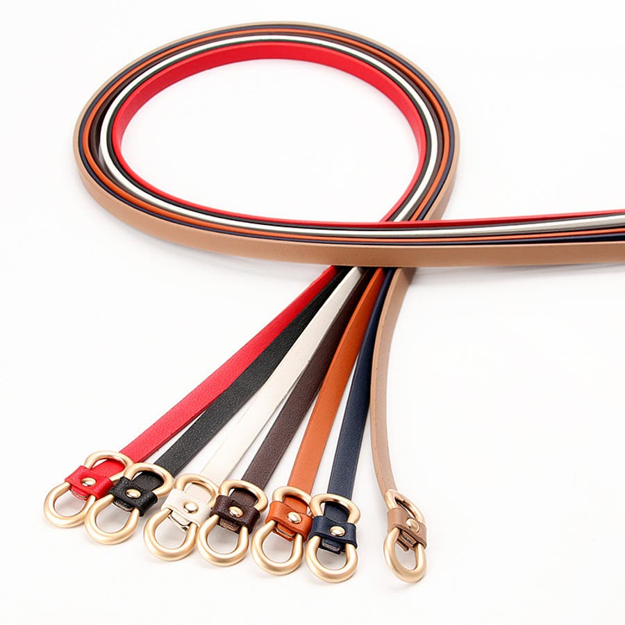 細めのシルエットとゴールドカラーのバックルもおしゃれ♪