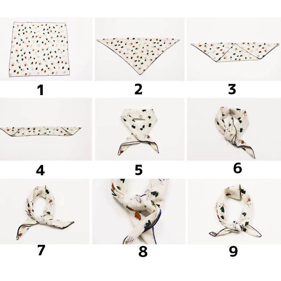 バッグに結んだり、首にまいてもおしゃれなスカーフです。
