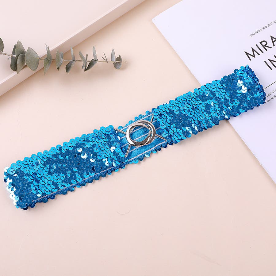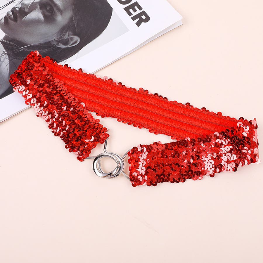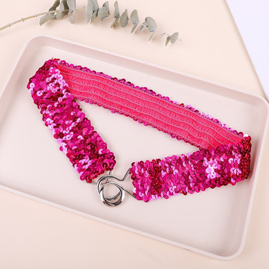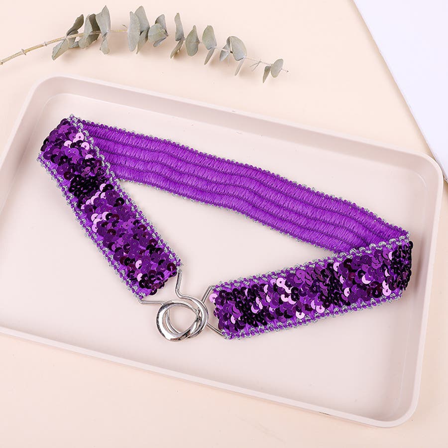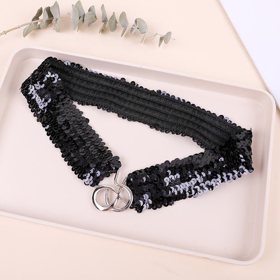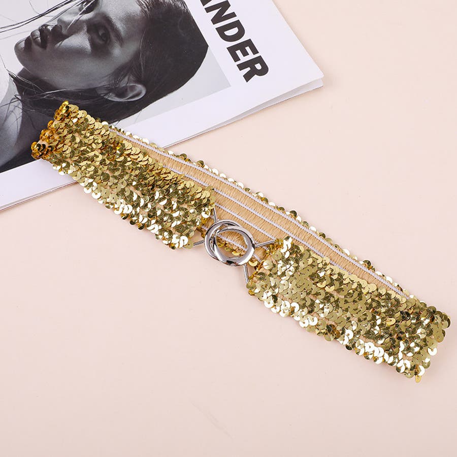 キラキラのスパンコールがゴージャスなウエストゴムベルトです。