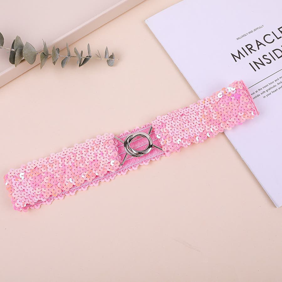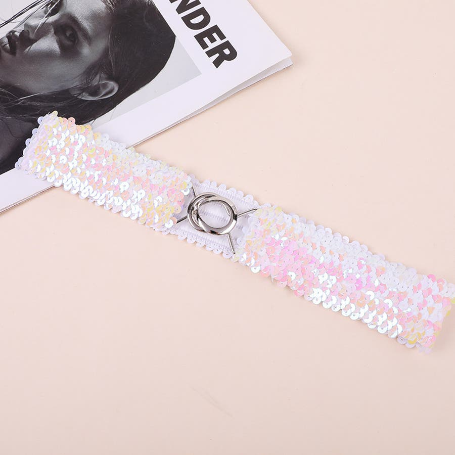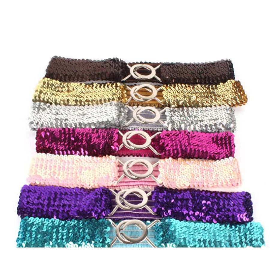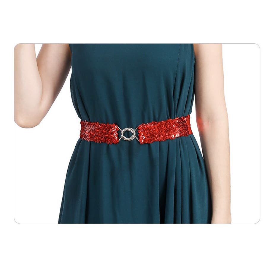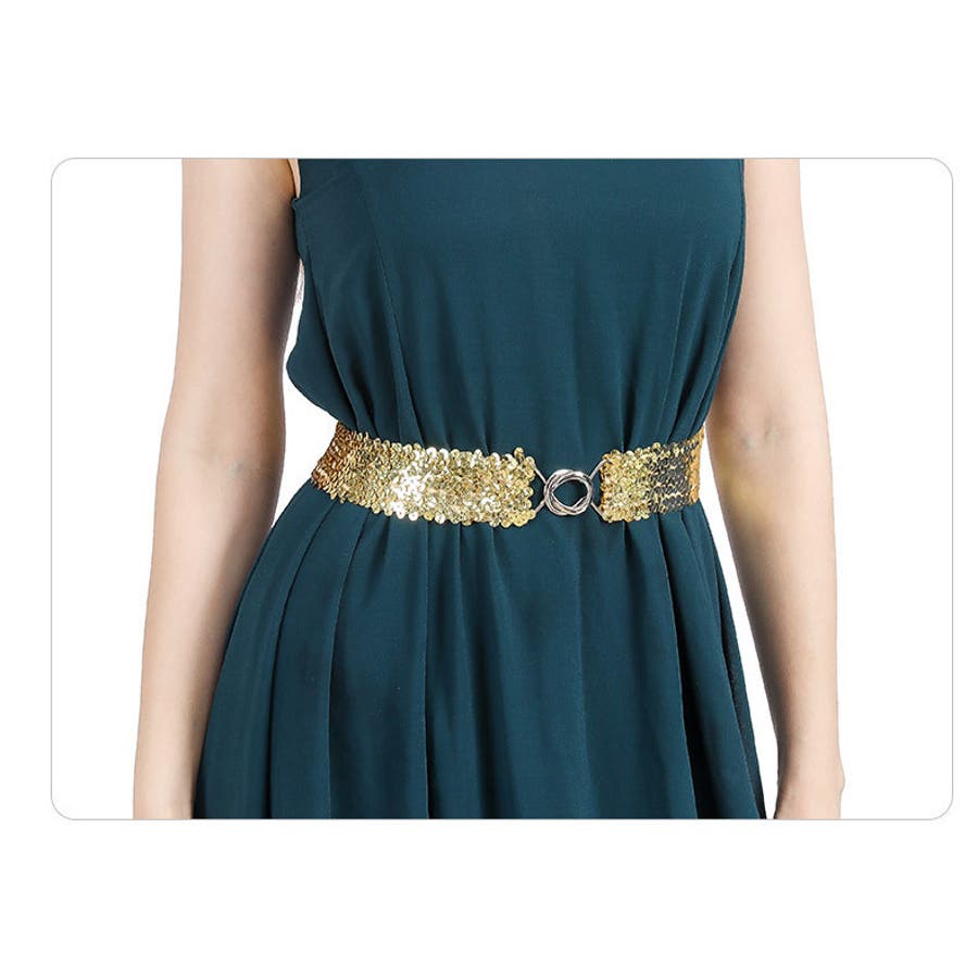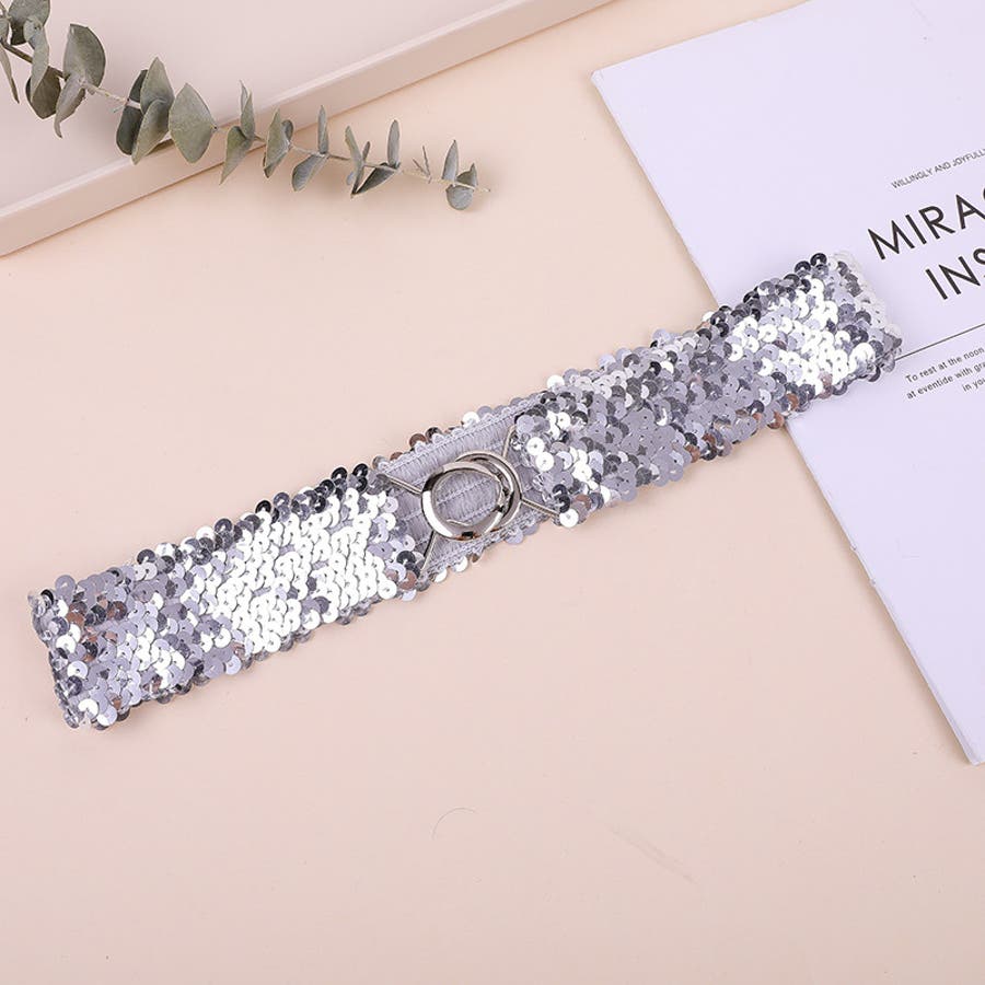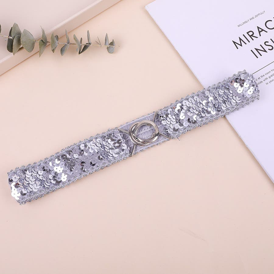キラキラのスパンコールがゴージャスなウエストゴムベルトです。