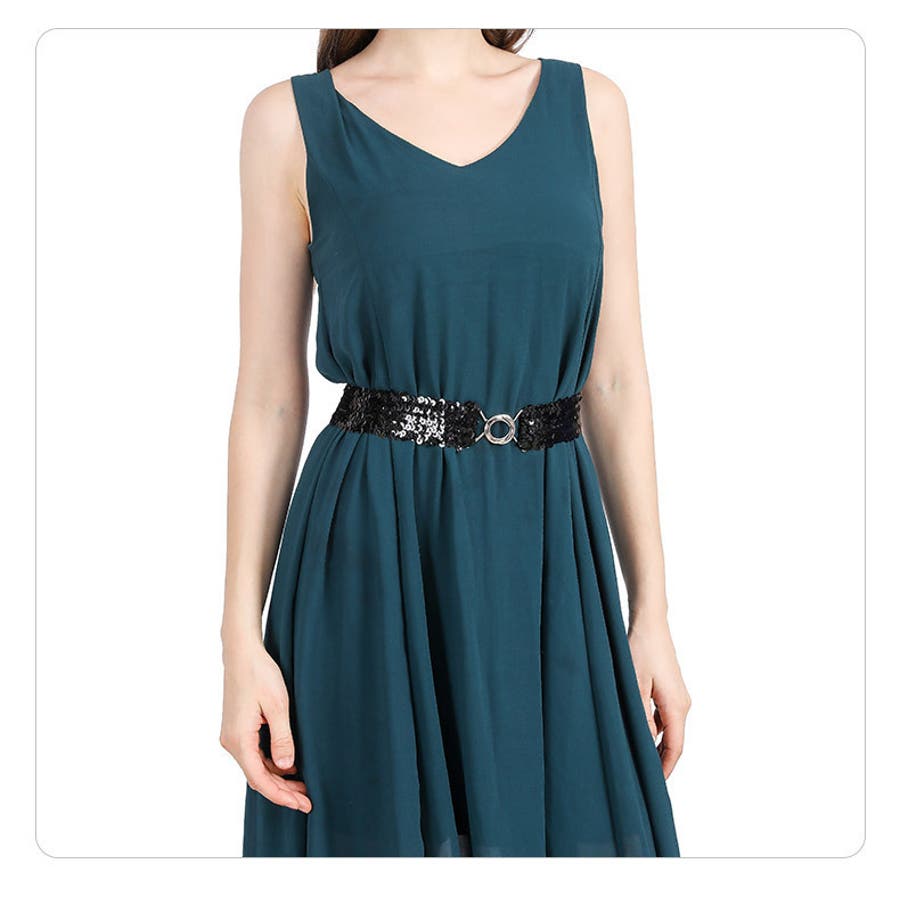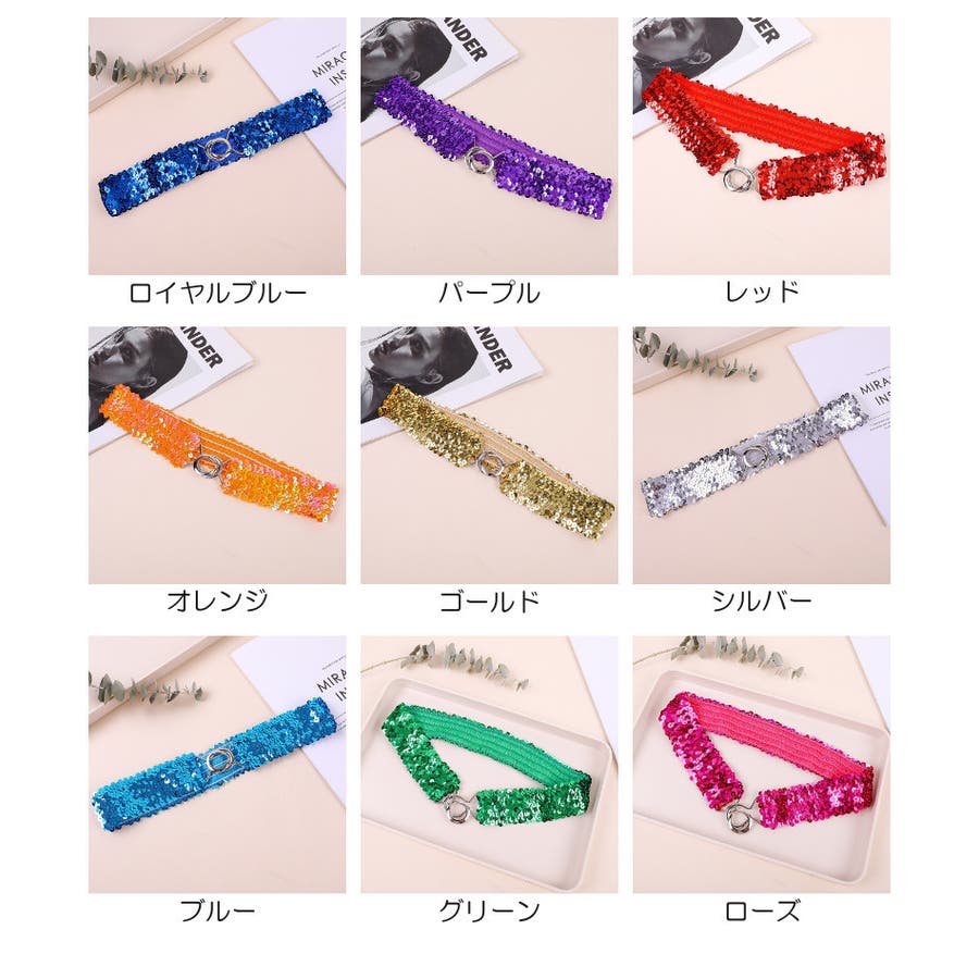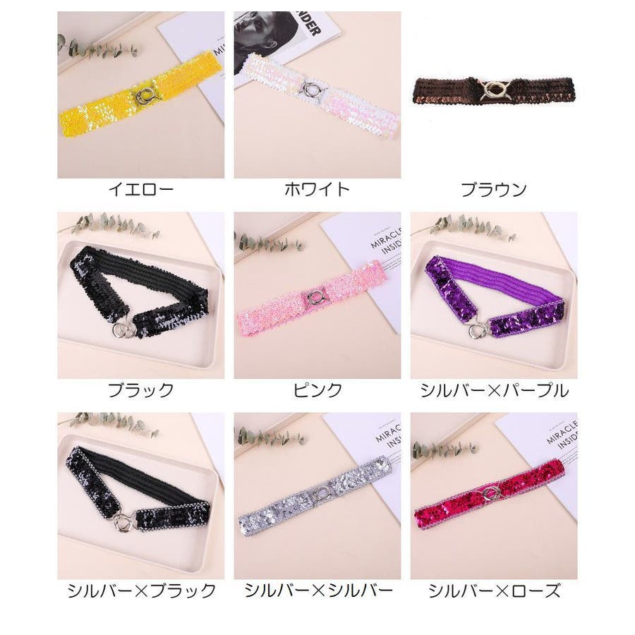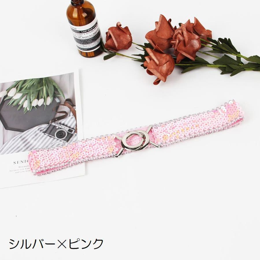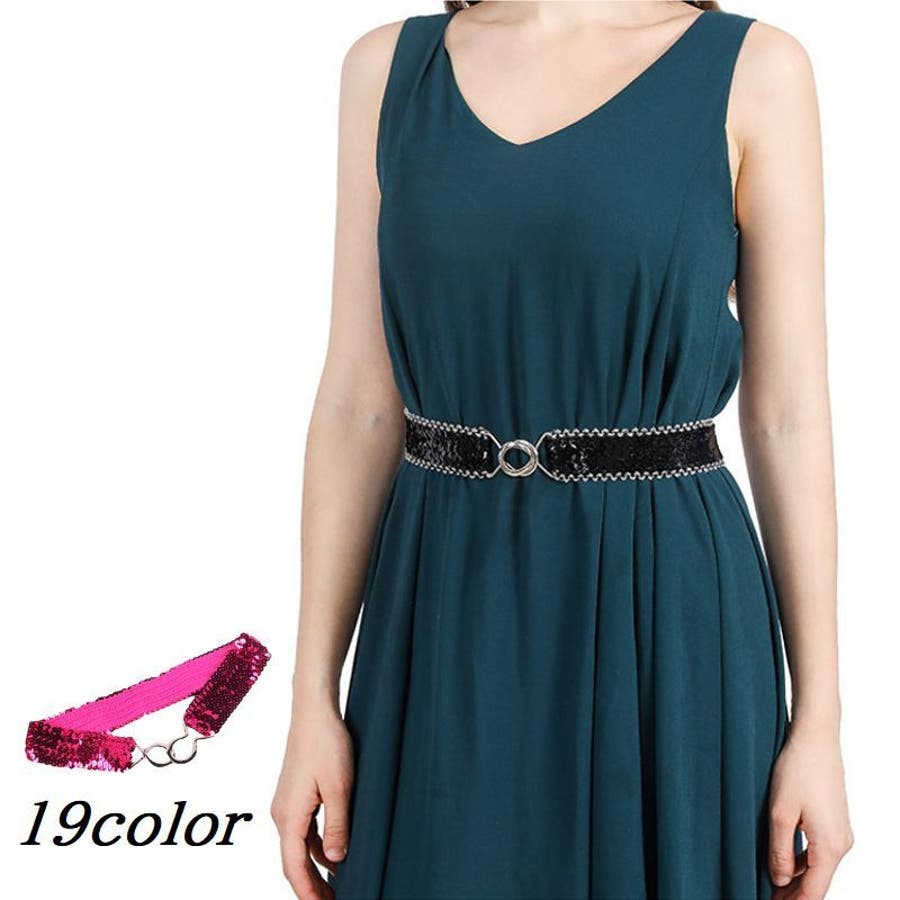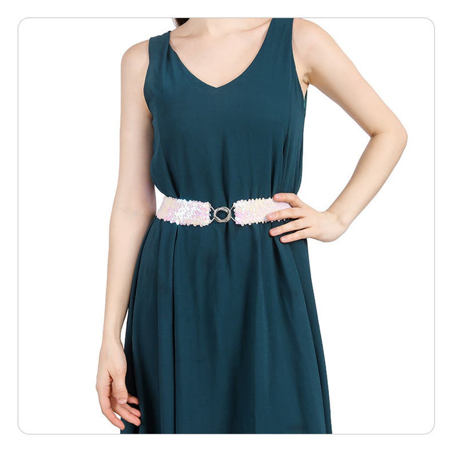 キラキラのスパンコールがゴージャスなウエストゴムベルトです。