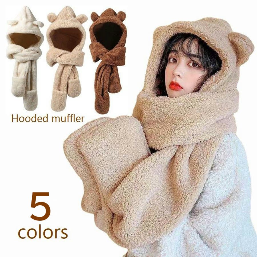 フーディマフラー フード付 ミトン一体型マフラー