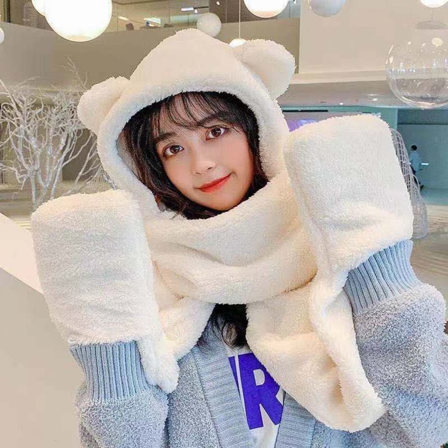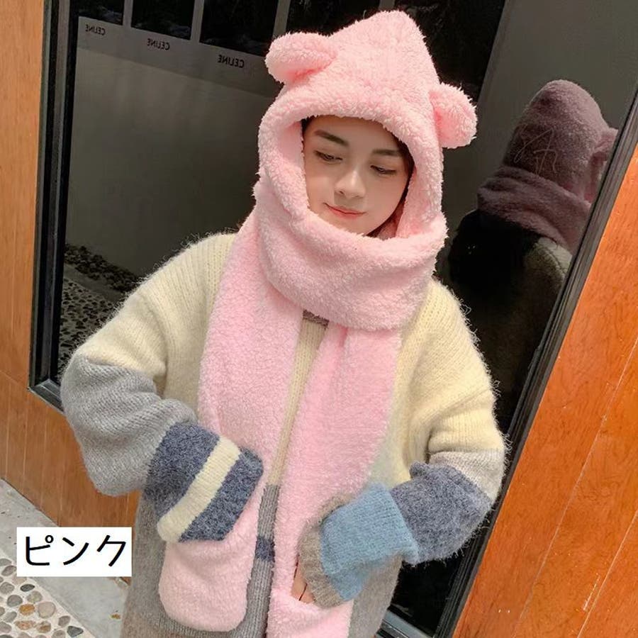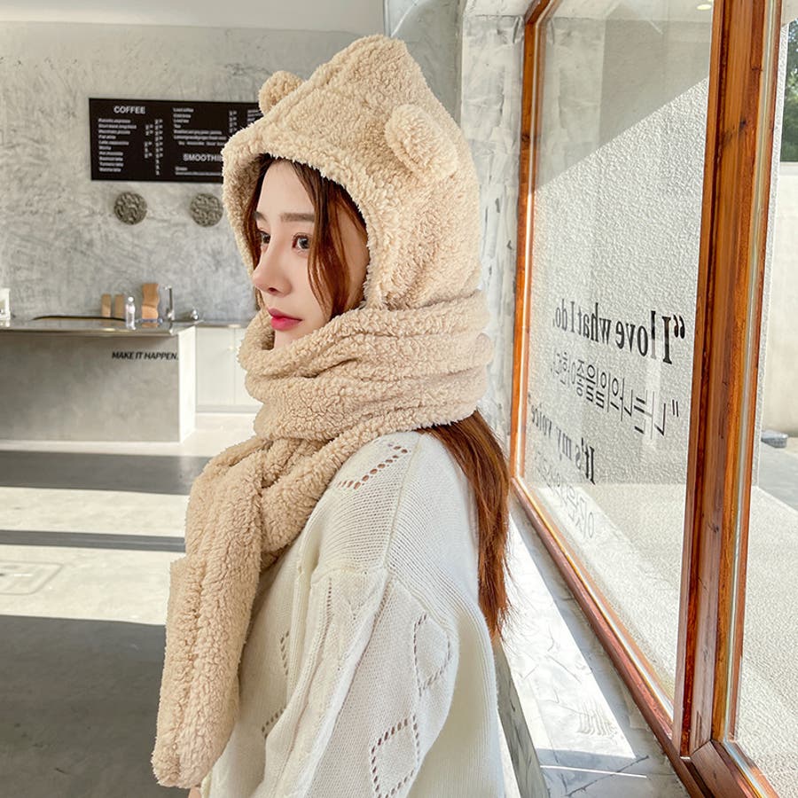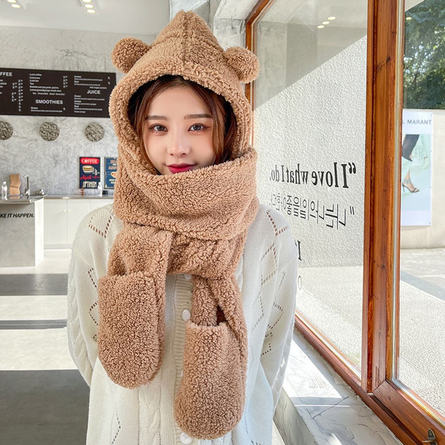 フード&ミトン付のボアマフラーでおしゃれに防寒対策。