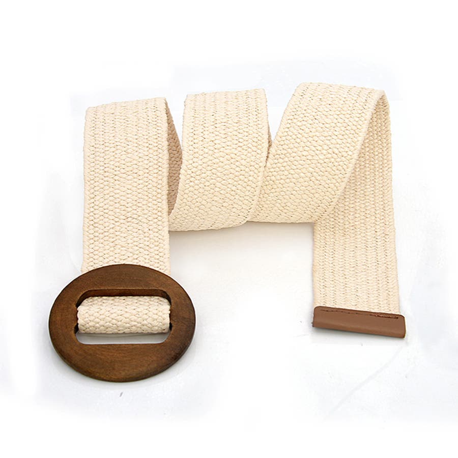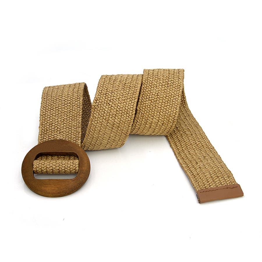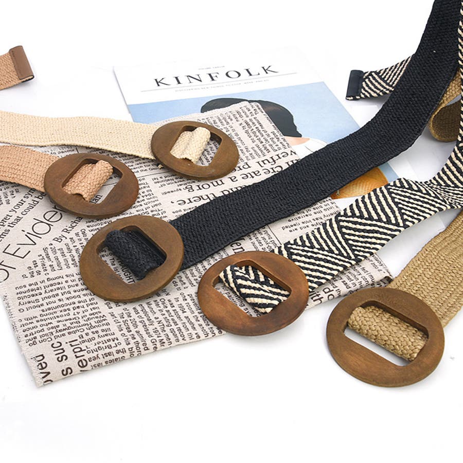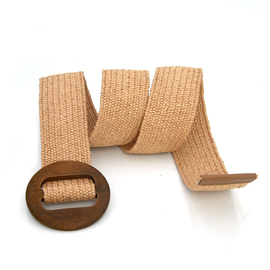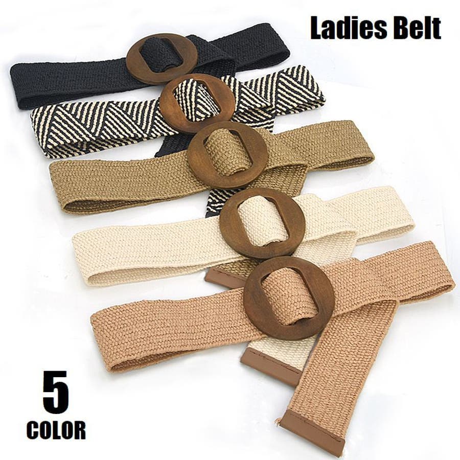 ウッド調のバックルがおしゃれなレディース用サッシュベルトです。