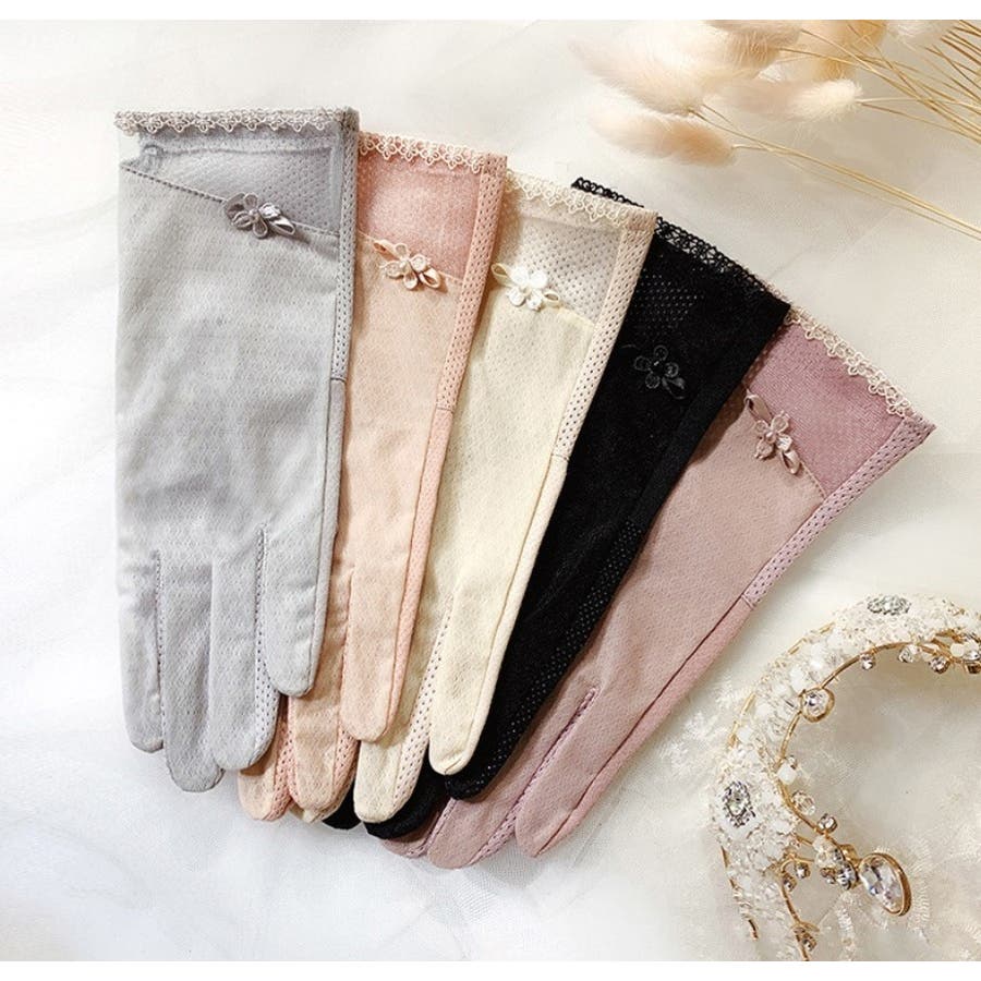 手首の部分に小花をあしらったかわいいデザインになっています。