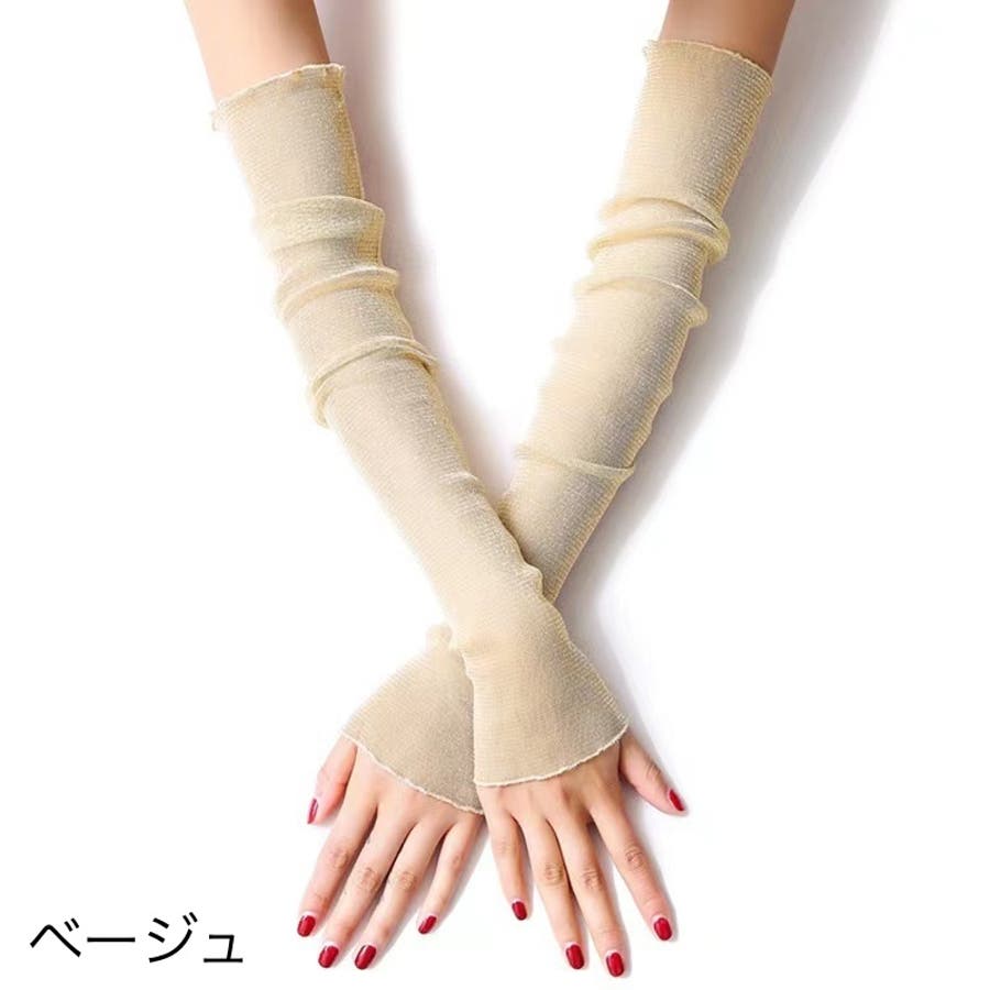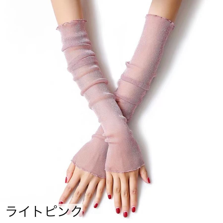 コーデの邪魔をしないシンプルなデザインのレディース用アームカバーです。