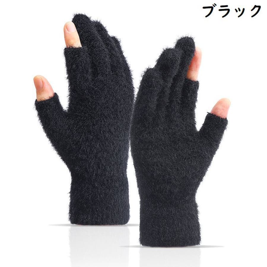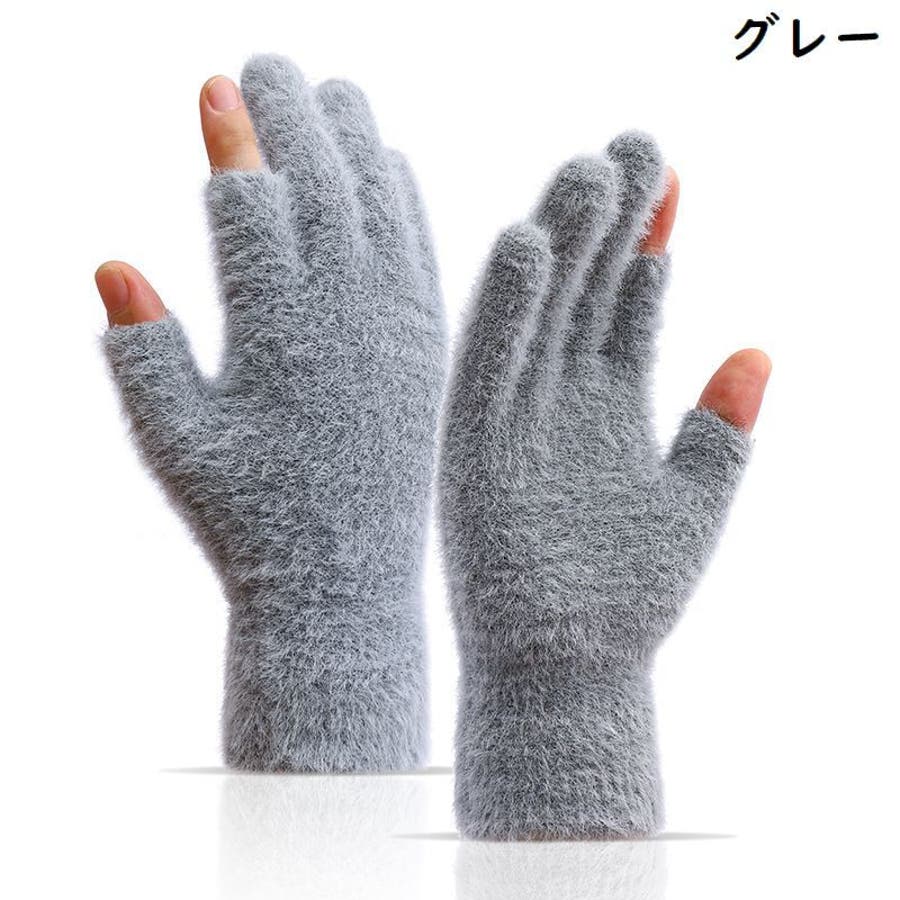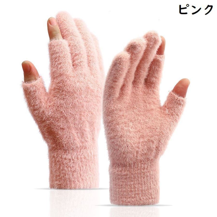 親指&人差し指が指切りタイプの男女兼用ニット手袋です。