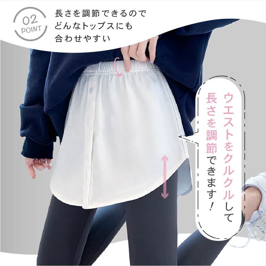 ゴムのウエストでトップスの丈に合わせて調整可能です。