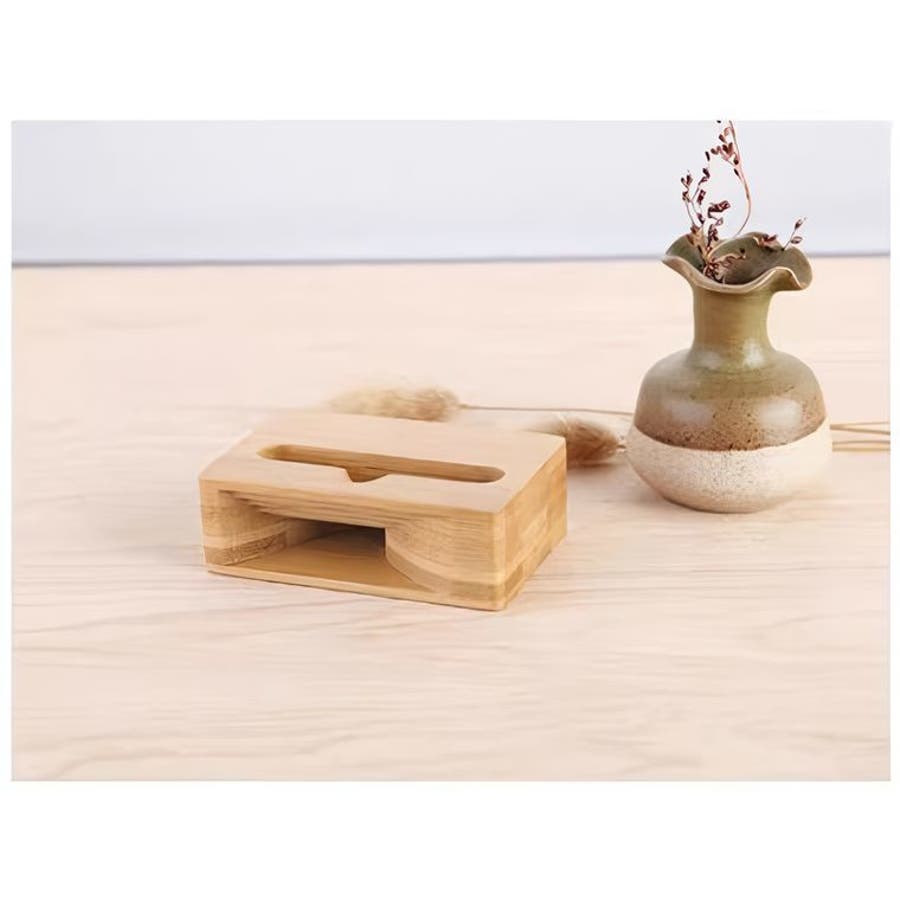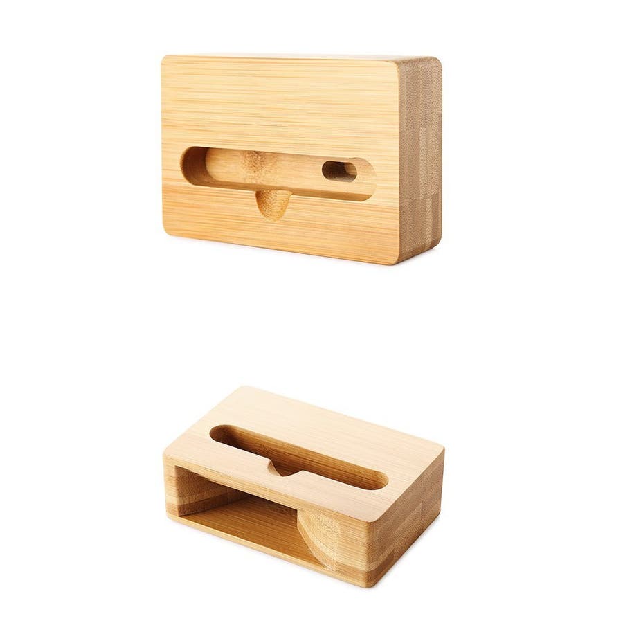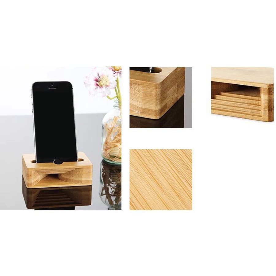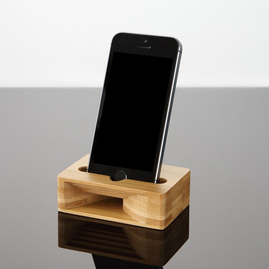 スタンド一体型のバンブー製スマホスピーカーです。