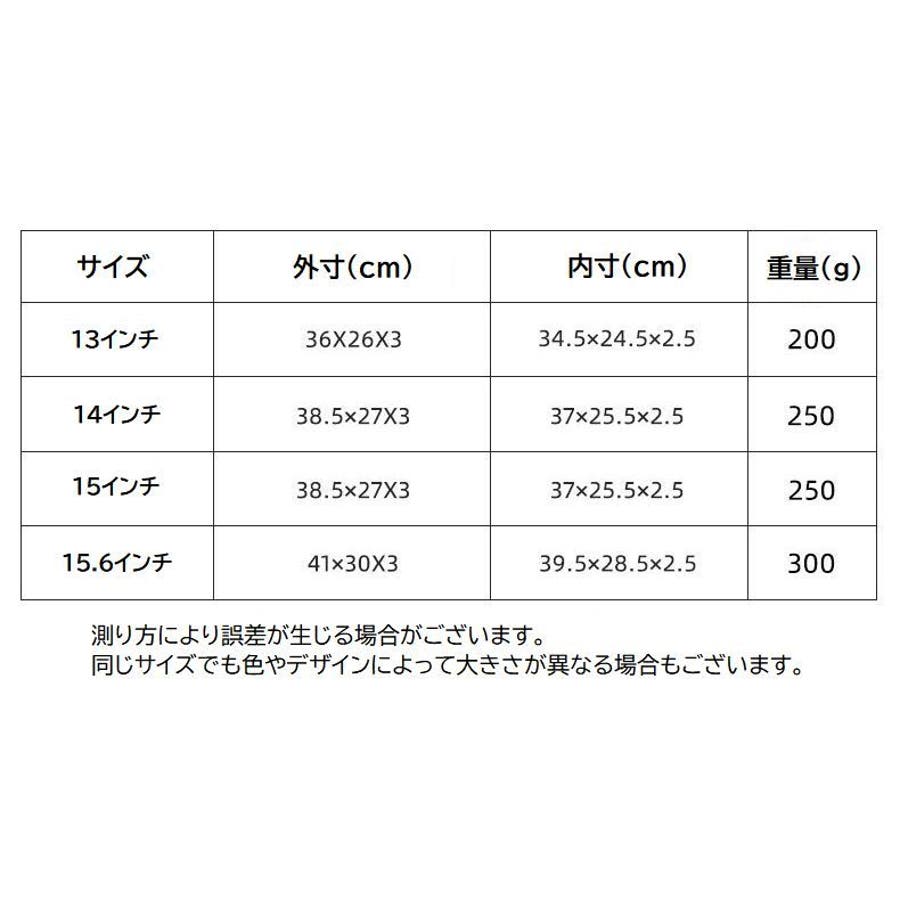 | サイズ | 13インチ / 14インチ / 15インチ / 15.6インチ |