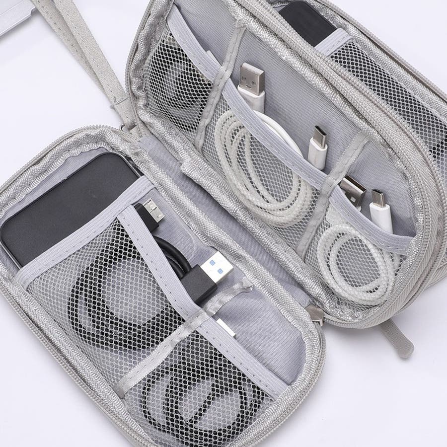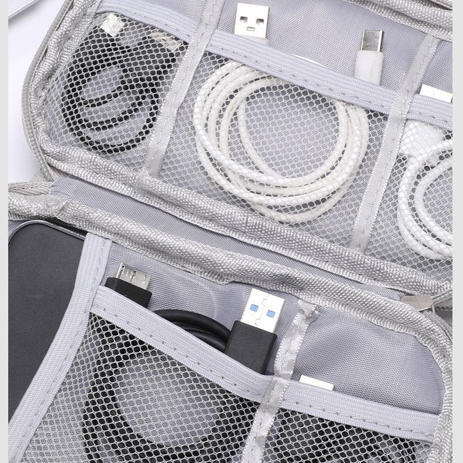 ケーブルやUSBメモリ、モバイルバッテリー、外付けHDDなどを整理して持ち運び可能に◎