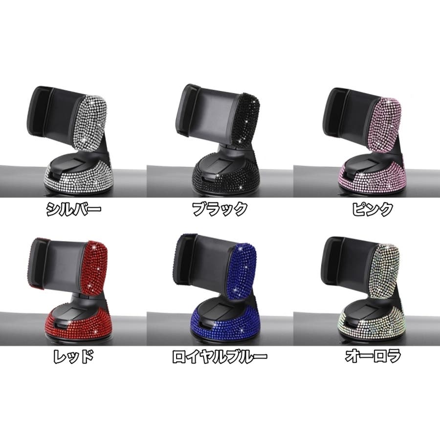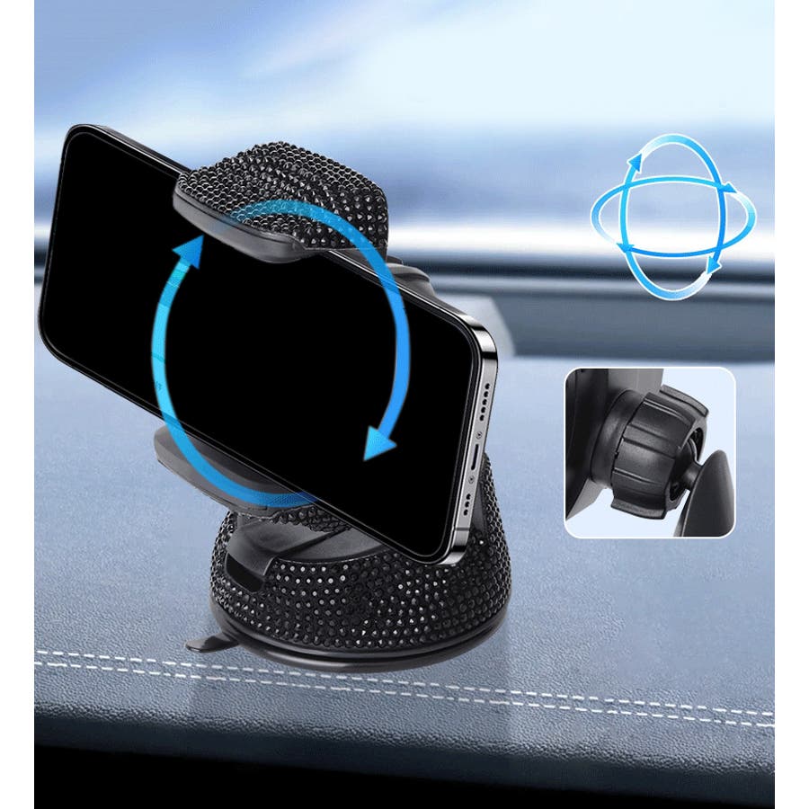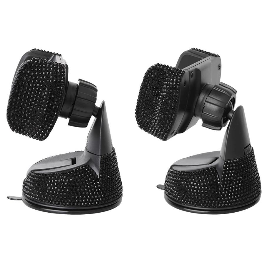 キラキラ輝くラインストーンがおしゃれな車載スマホホルダーです。