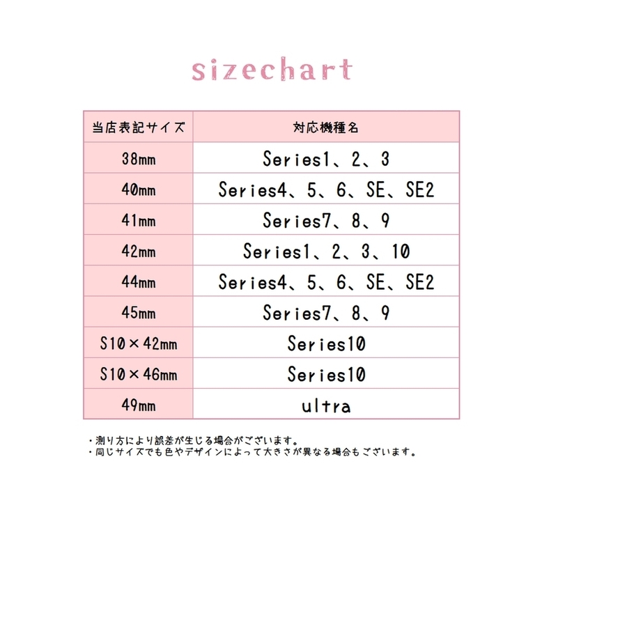 | カラー | 38mm / 40mm / 41mm / 42mm / 44mm / 45mm / 49mm / S10×42mm / S10×46mm |