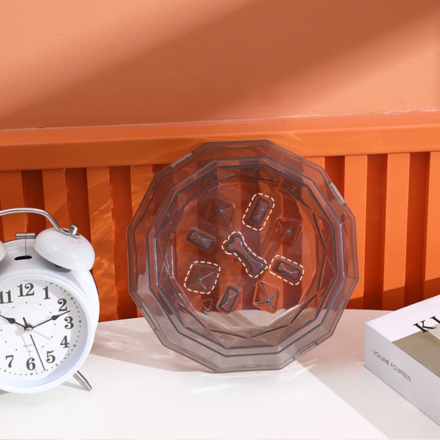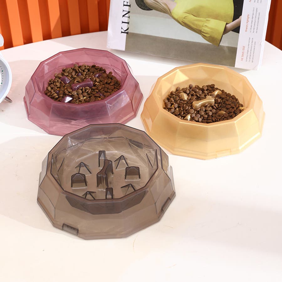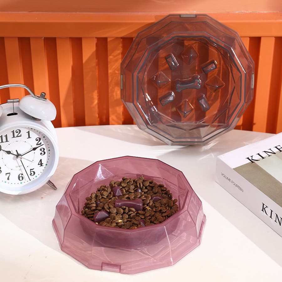 軽くて透明感があります。うちの犬はなんでもガジガジ噛んじゃうので、こわれるかなー?でも早食い防止の効果に期待!
