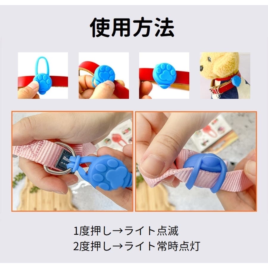 ペットの首輪に付けて使用する他、ハーネス、リード、バッグ、靴、ベビーカー、自転車、ランドセルなど様々な用途でご利用いただけます。