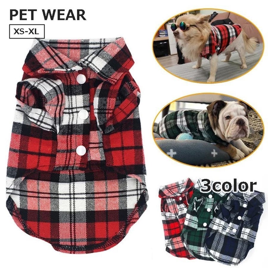 カジュアルコーデが楽しめる、ペット用のチェック柄シャツです。