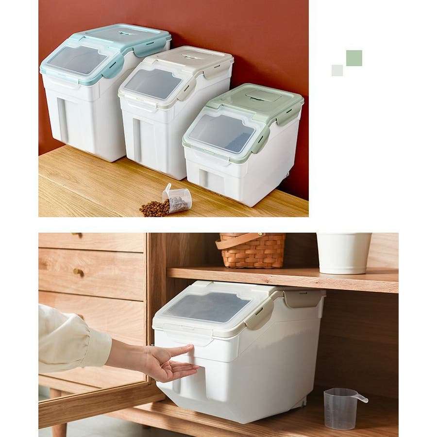 投稿日:2022.09.27ドッグフードをいれたくて購入。15キロを買ったので13キロくらいはいるかなと思ったのですが、全然入らない。思ったより小さかった。でもグリーンのカラーが淡くてリビングにおいていても馴染んでいていい感じ。