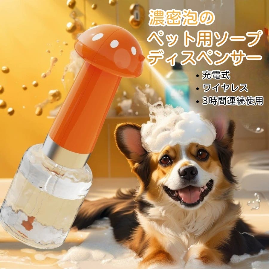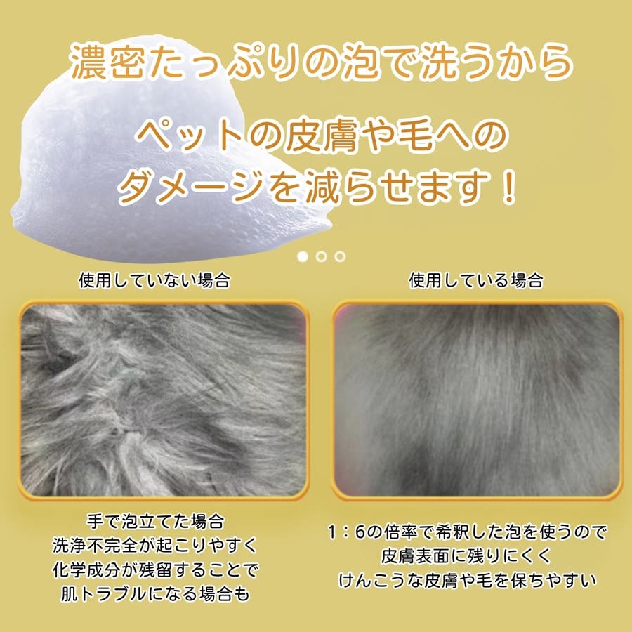 自動発泡機能で簡単にふわふわの泡を作り、ペットの皮膚と毛を優しく洗えます◎
