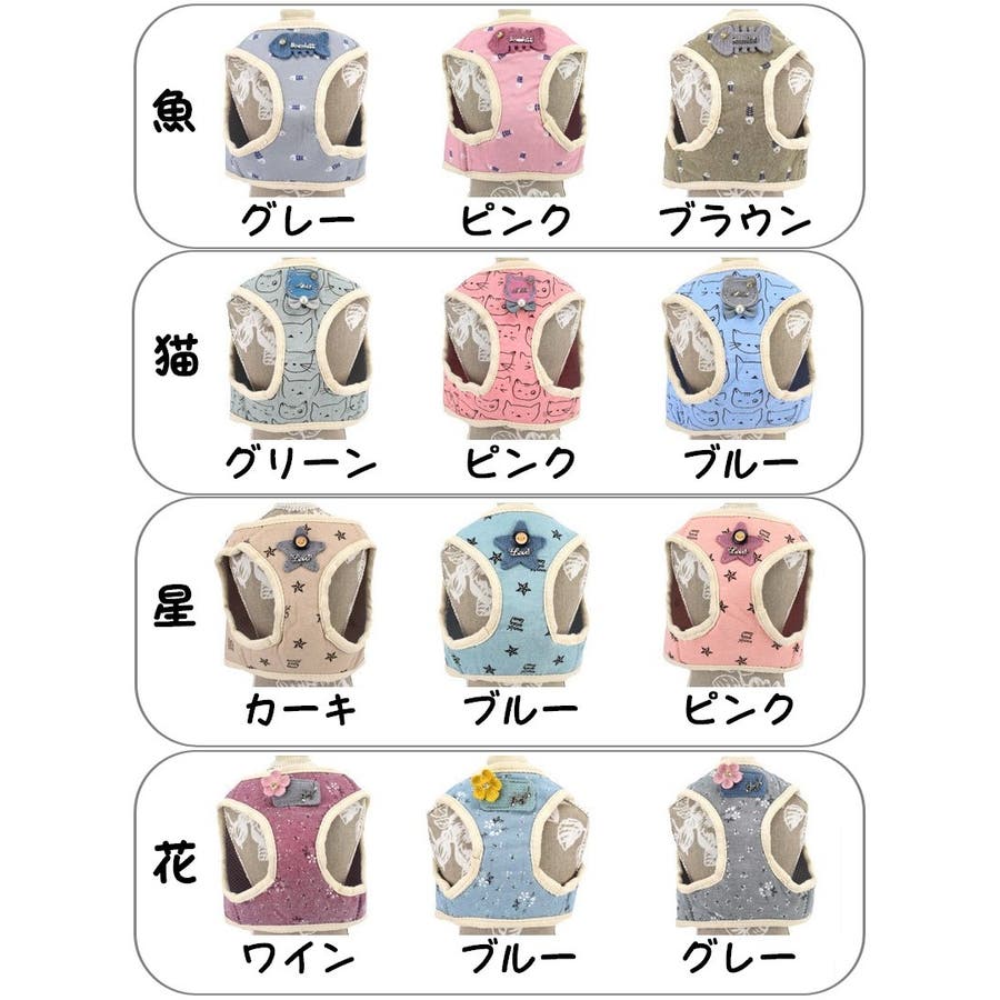 | カラー×デザイン | ブルー×猫 / ブルー×花 / ブルー×星 / ブラウン×魚 / グリーン×猫 / グレー×魚 / グレー×花 / カーキ×星 / ピンク×猫 / ピンク×魚 / ピンク×星 / ワイン×花 |