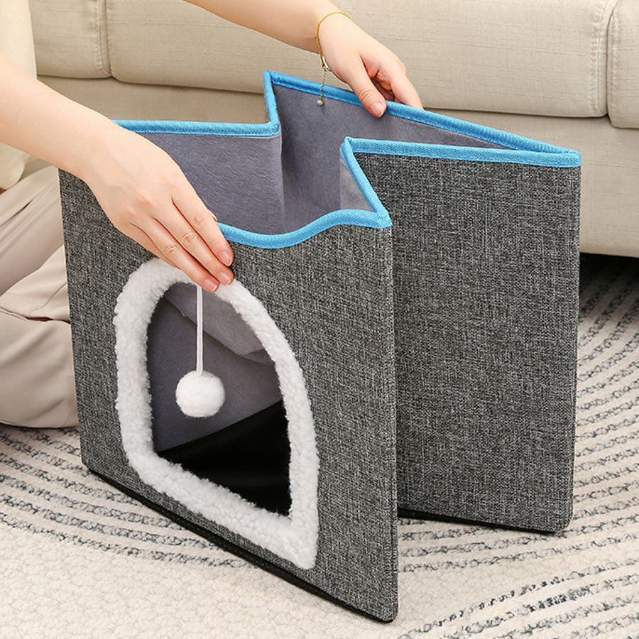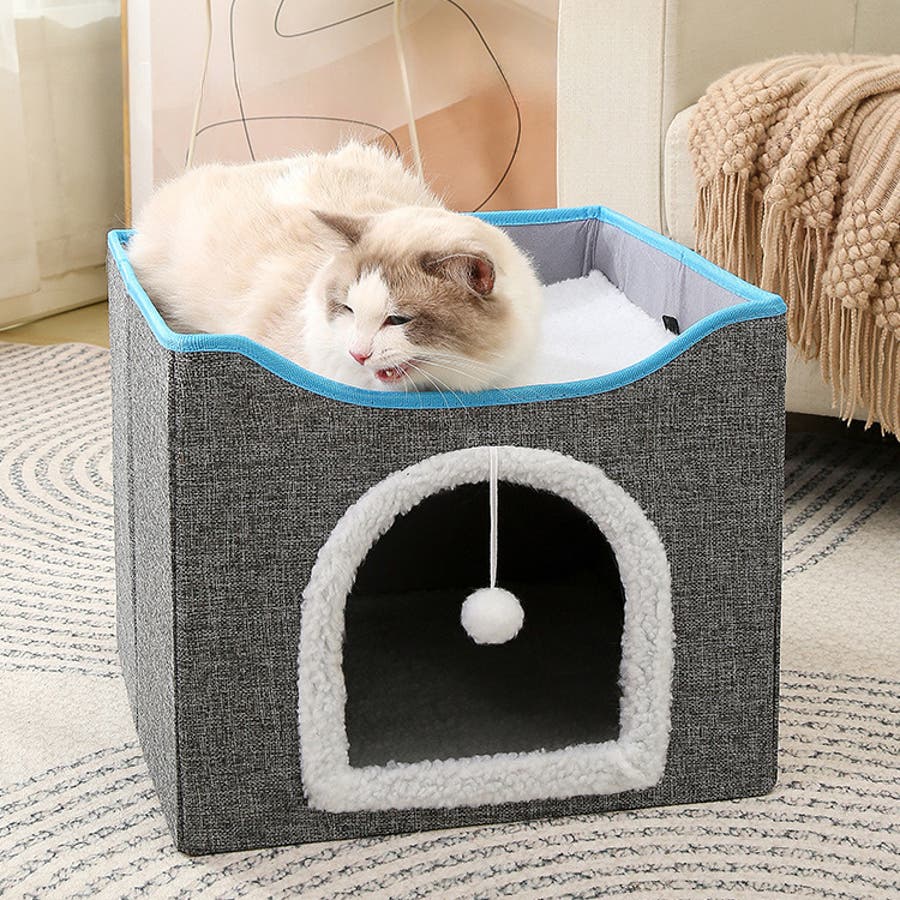 爪とぎや紐付きのボールが付いていて、遊び場としても◎