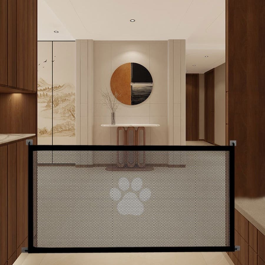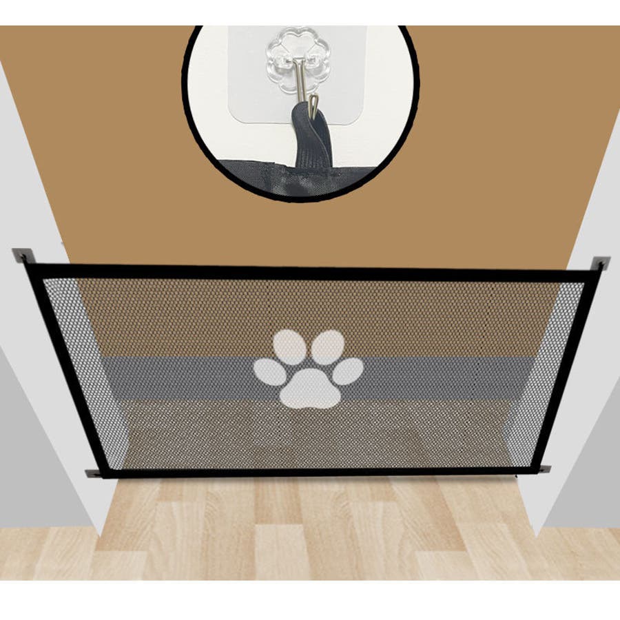 フックに引っ掛けるだけなので行き来がしやすい、便利なペットゲートです。