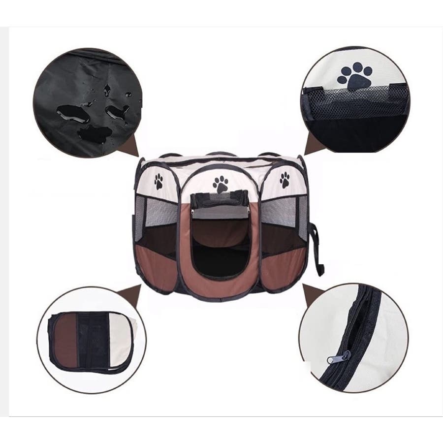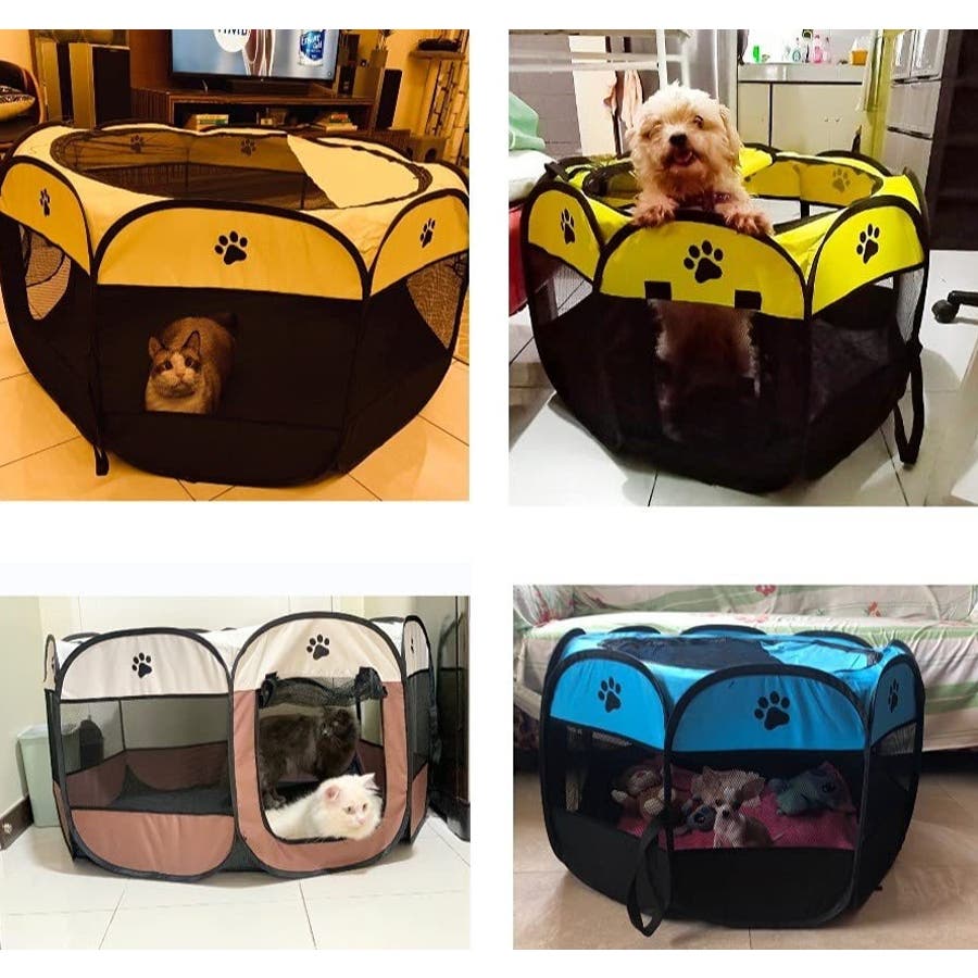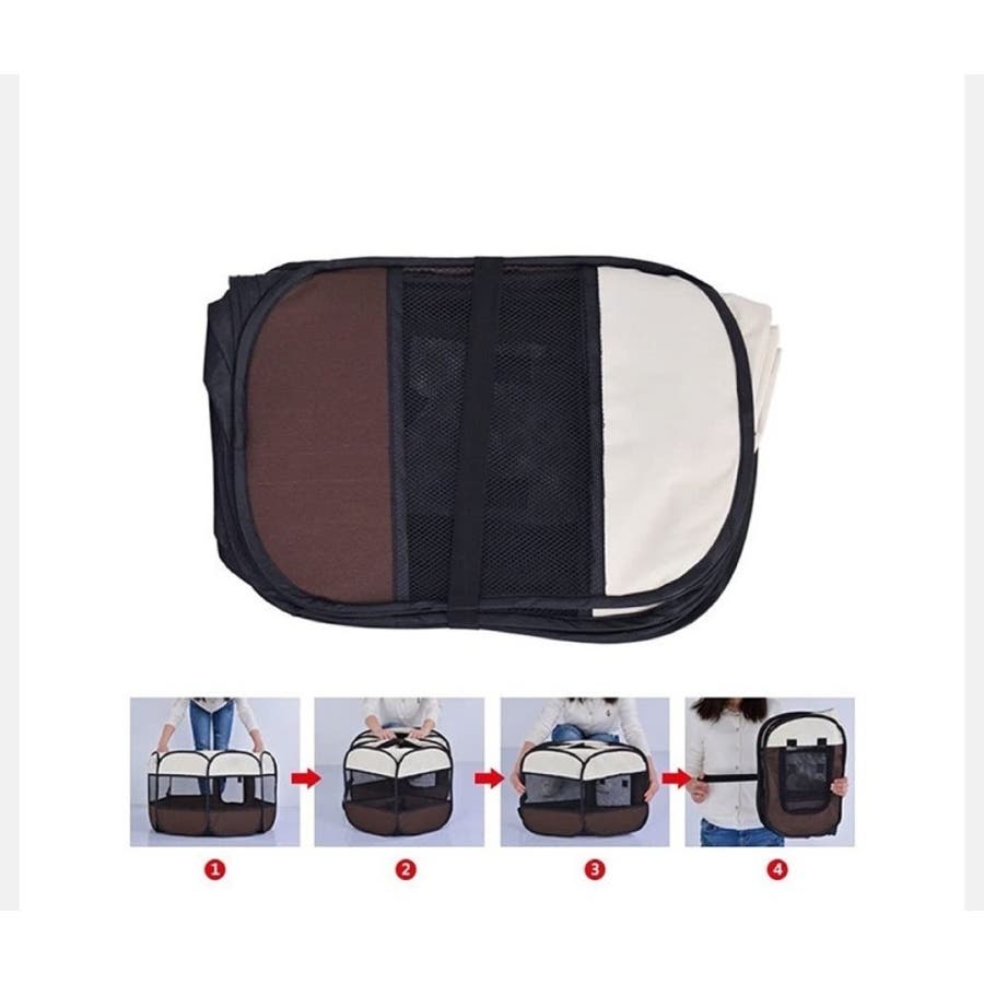 屋外での使用目的で購入しました。3キロのマルプーですがトイレ、ベッドを入れても余裕があります。ただ、新品の匂い?ビニールの匂いが気になるので日干ししたいと思います。