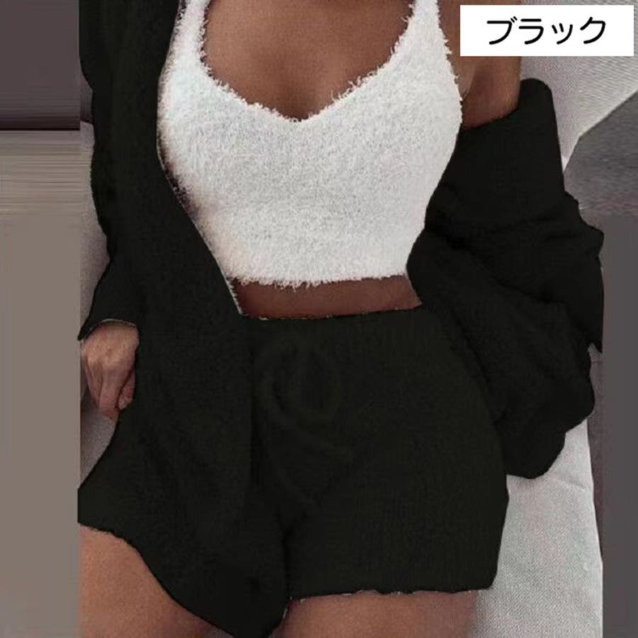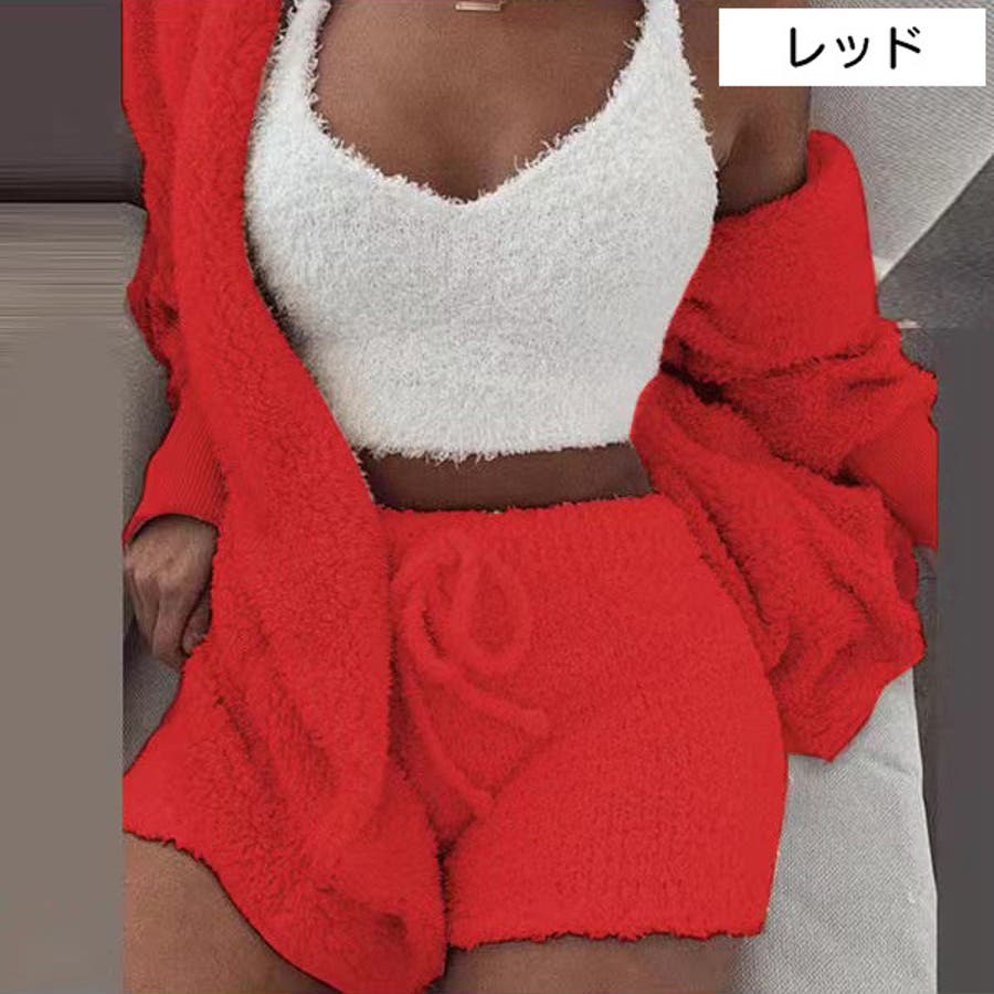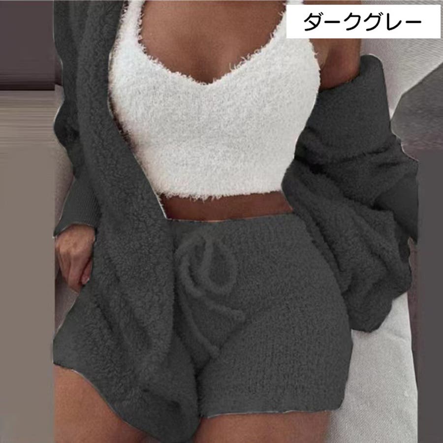 ハーフトップ、ショートパンツ、パーカーの3点セットになります。