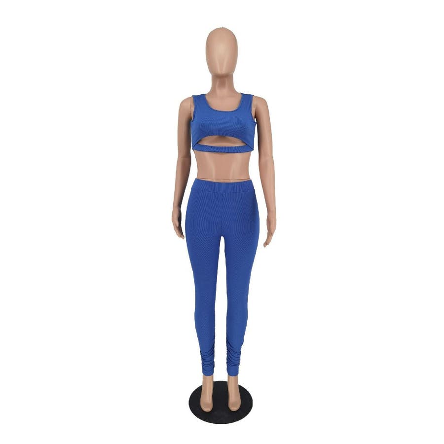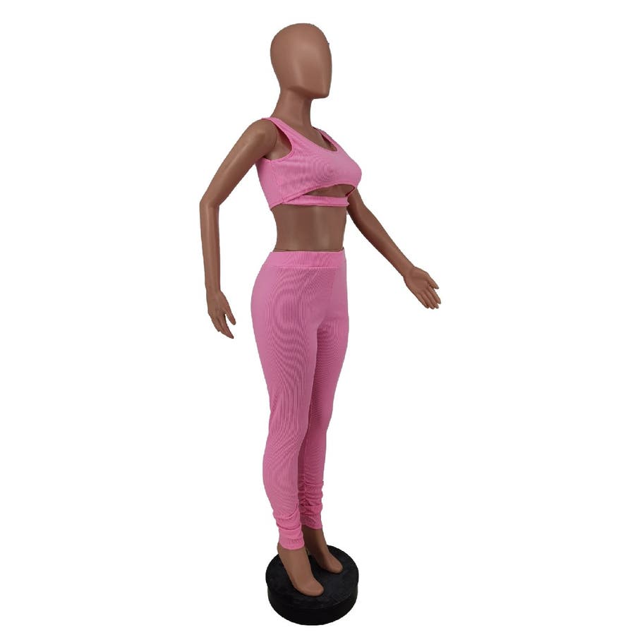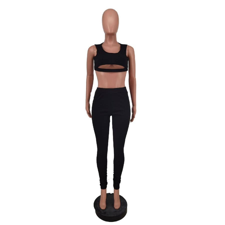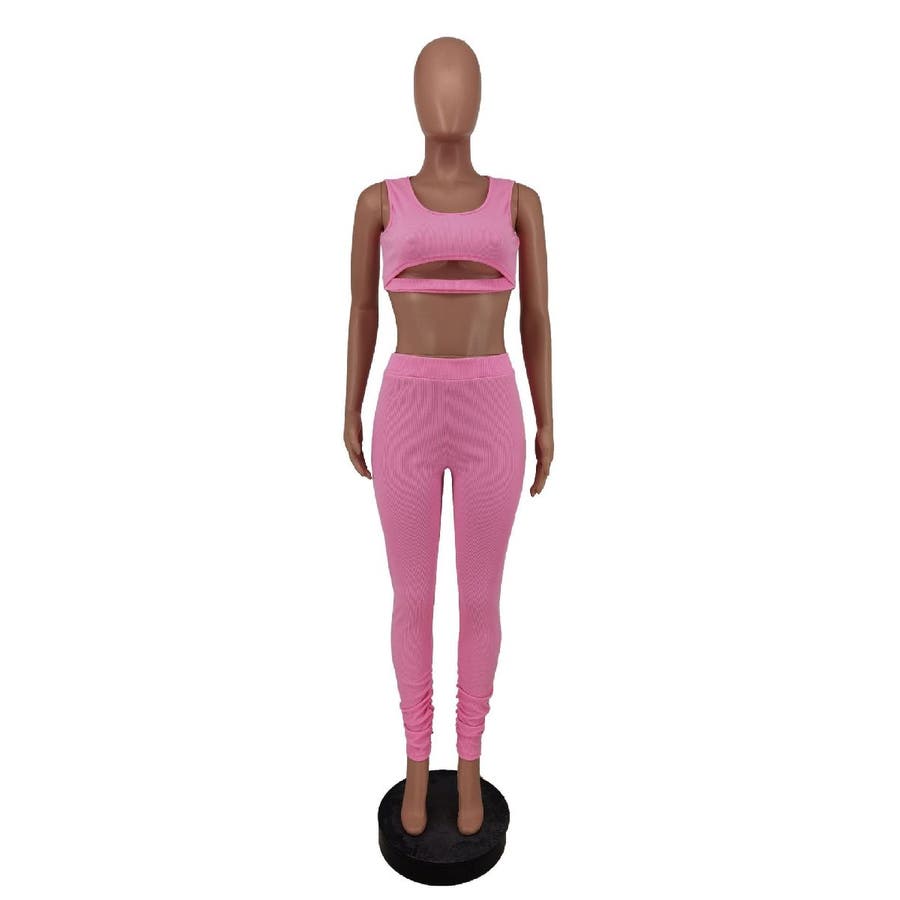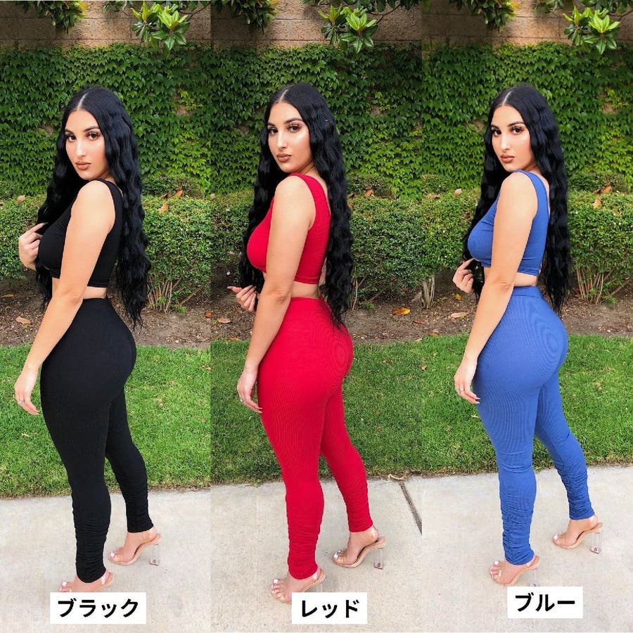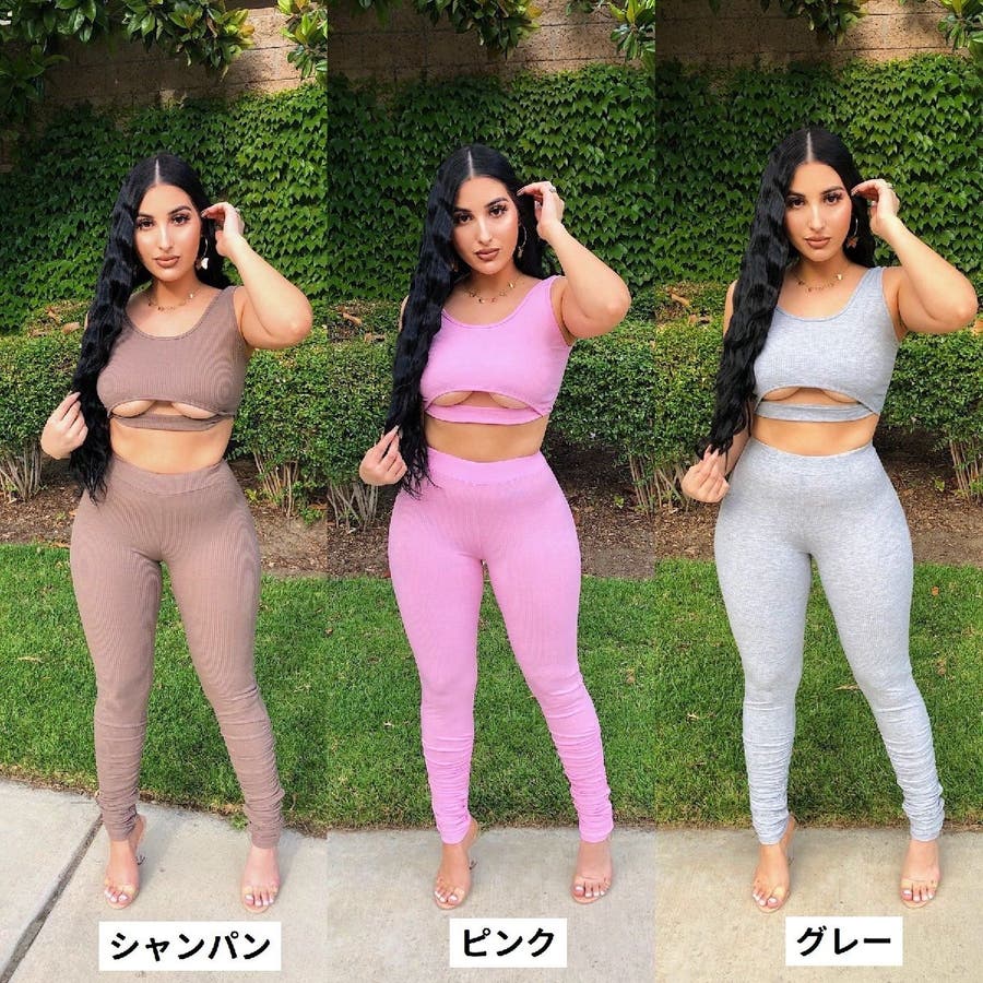 ショート丈のタンクップ&レギンスパンツの上下セット!