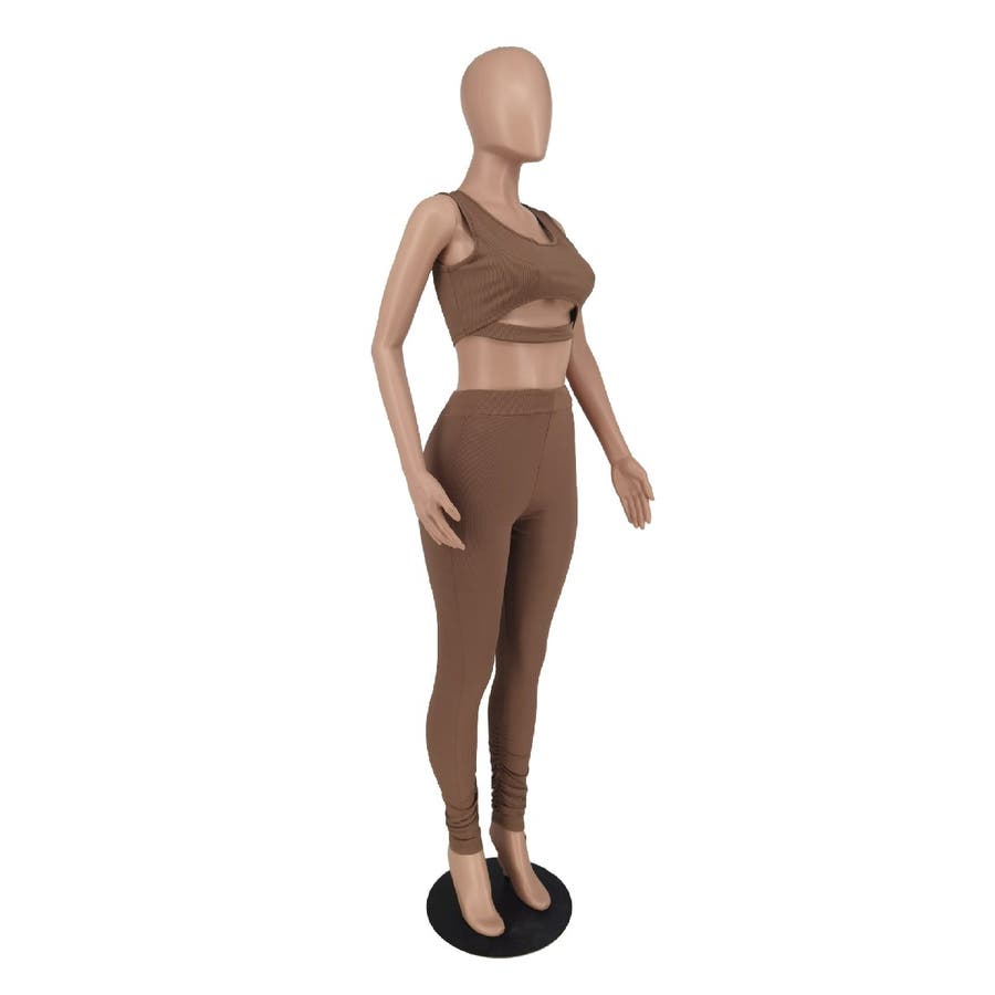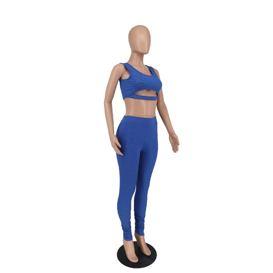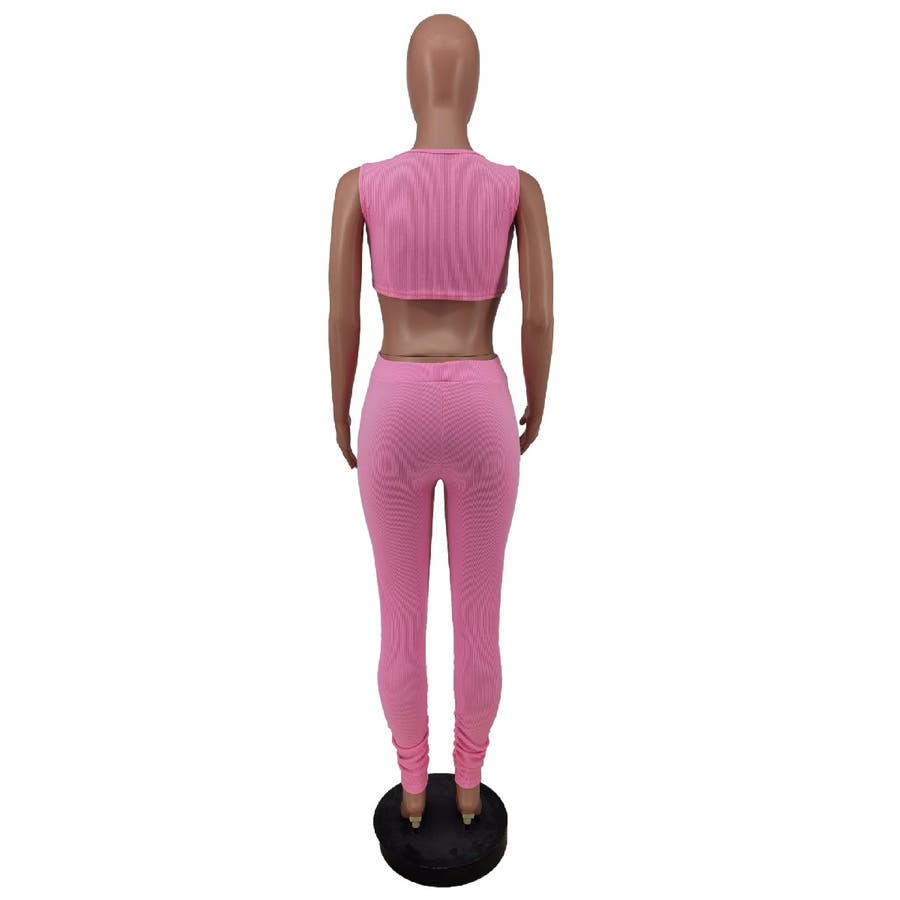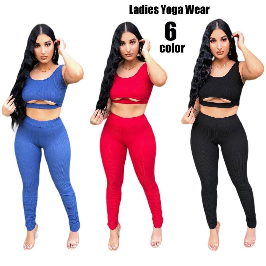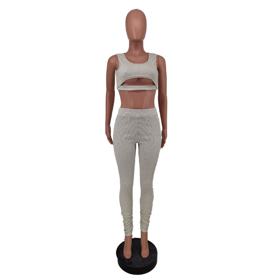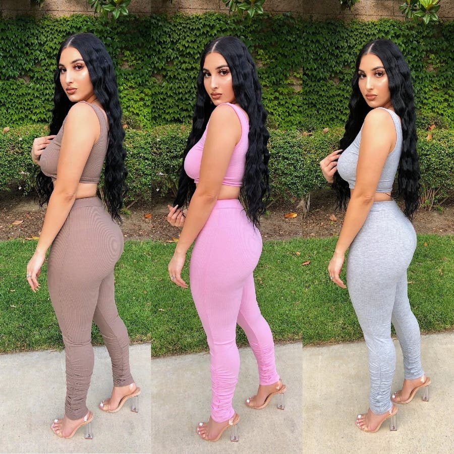 ショート丈のタンクップ&レギンスパンツの上下セット!
