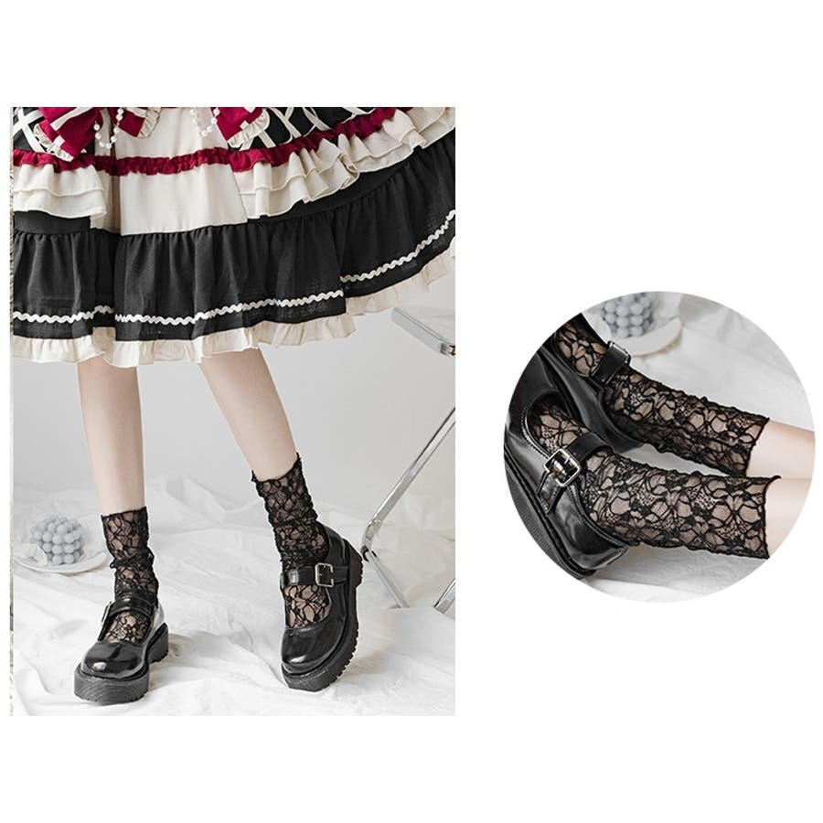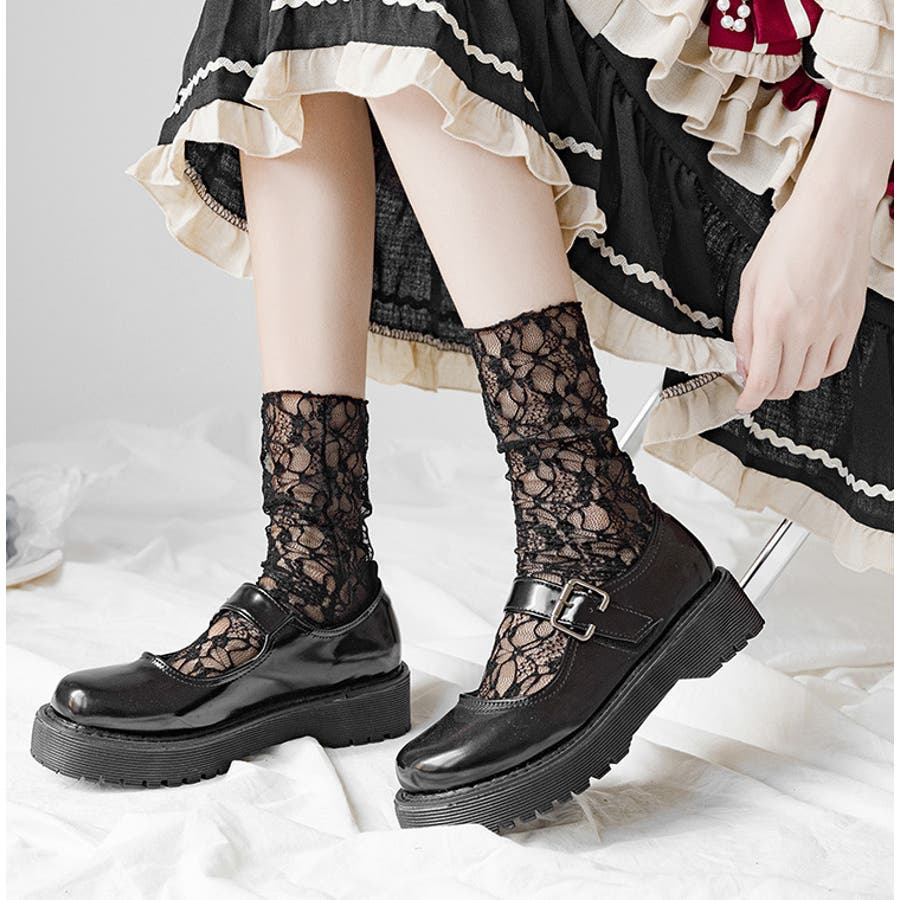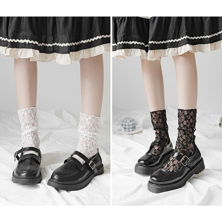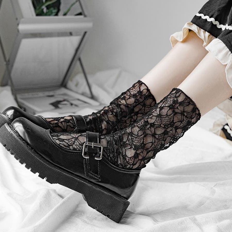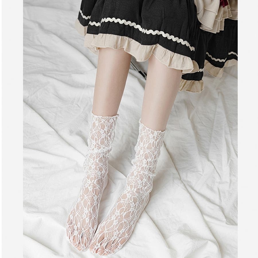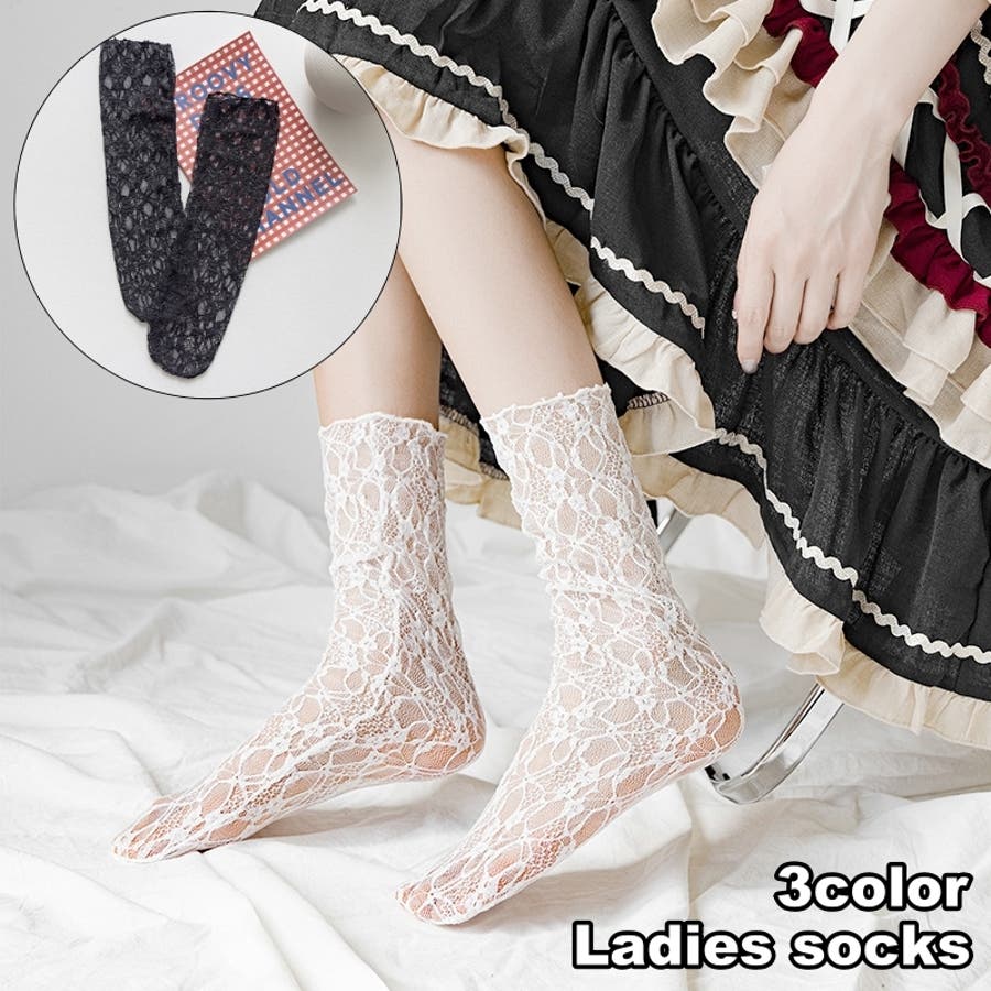 クルーソックス 靴下 総レース