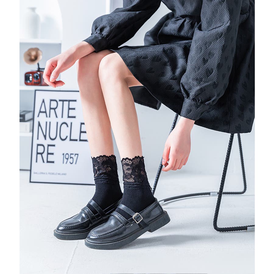 ゴスロリ・ロリータファッション等にも合わせやすい靴下です♪