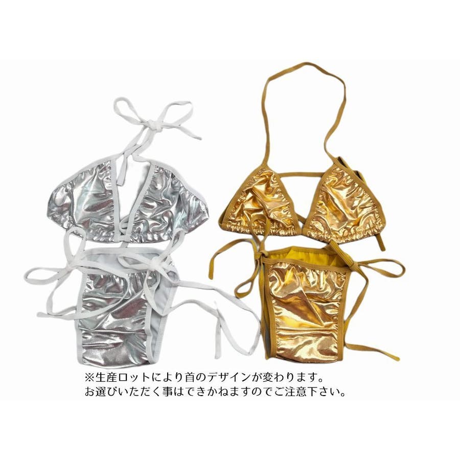 メタリックカラーのセクシーな三角ビキニ・上下セット。