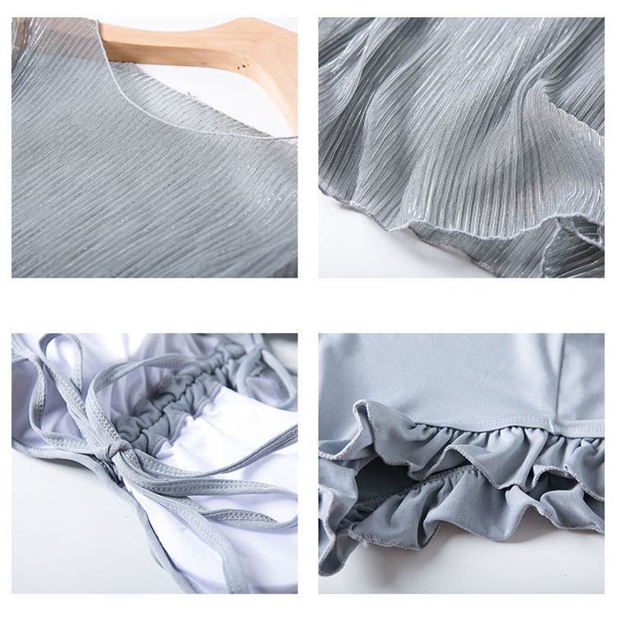 おしりが隠れるラメ入りシアートップス付きで、体型カバーも叶えてくれます♪