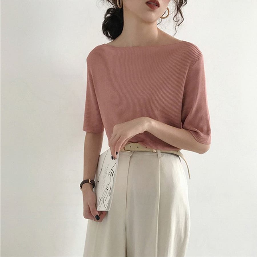 シンプルな無地デザインで、いろんなボトムスに合わせやすく、着回しにも便利な一着です♪