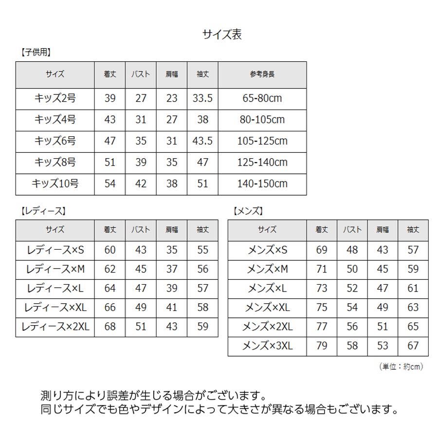 | サイズ | キッズ10号【140-150cm】 / キッズ2号【65-80cm】 / キッズ4号【80-105cm】 / キッズ6号【105-125cm】 / キッズ8号【125-140cm】 / レディース×2XL / レディース×L / レディース×M / レディース×S / レディース×XL / メンズ×2XL / メンズ×3XL / メンズ×L / メンズ×M / メンズ×S / メンズ×XL |