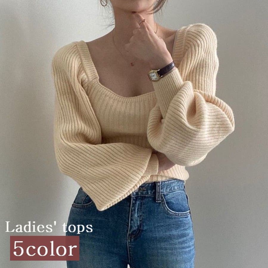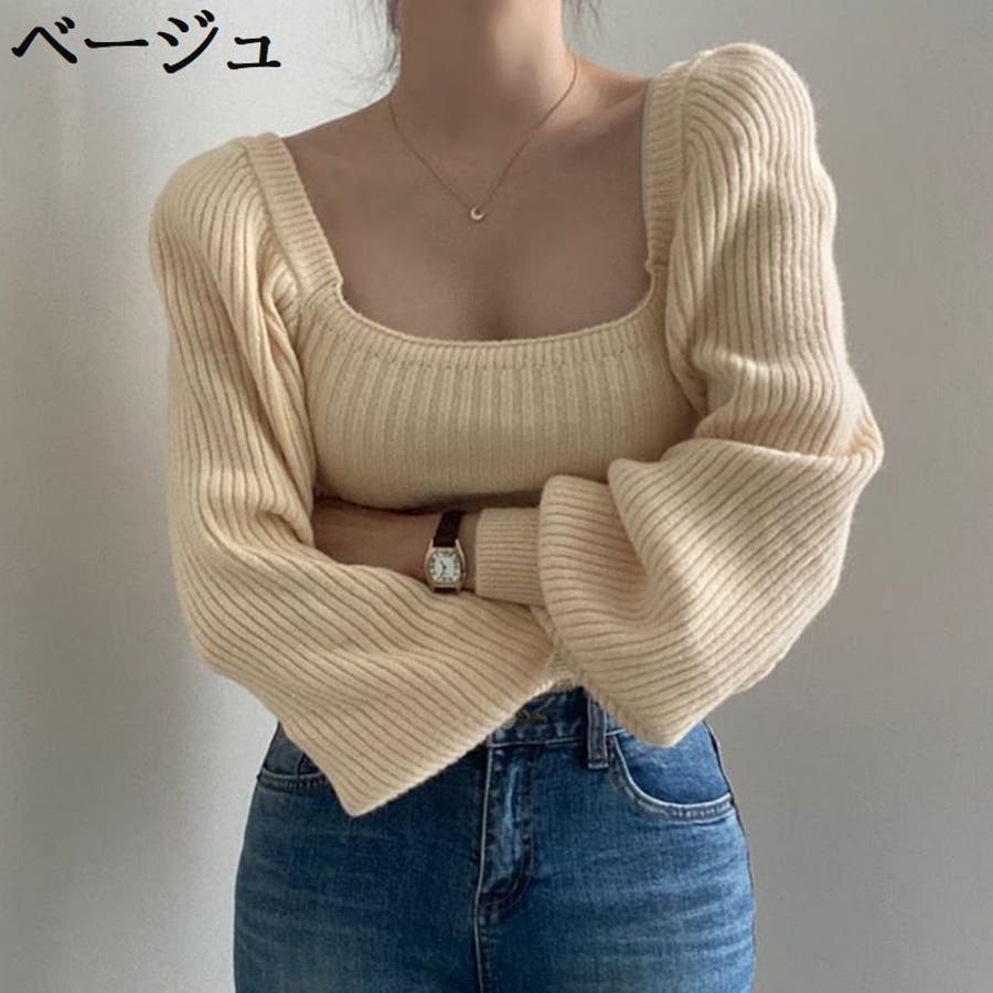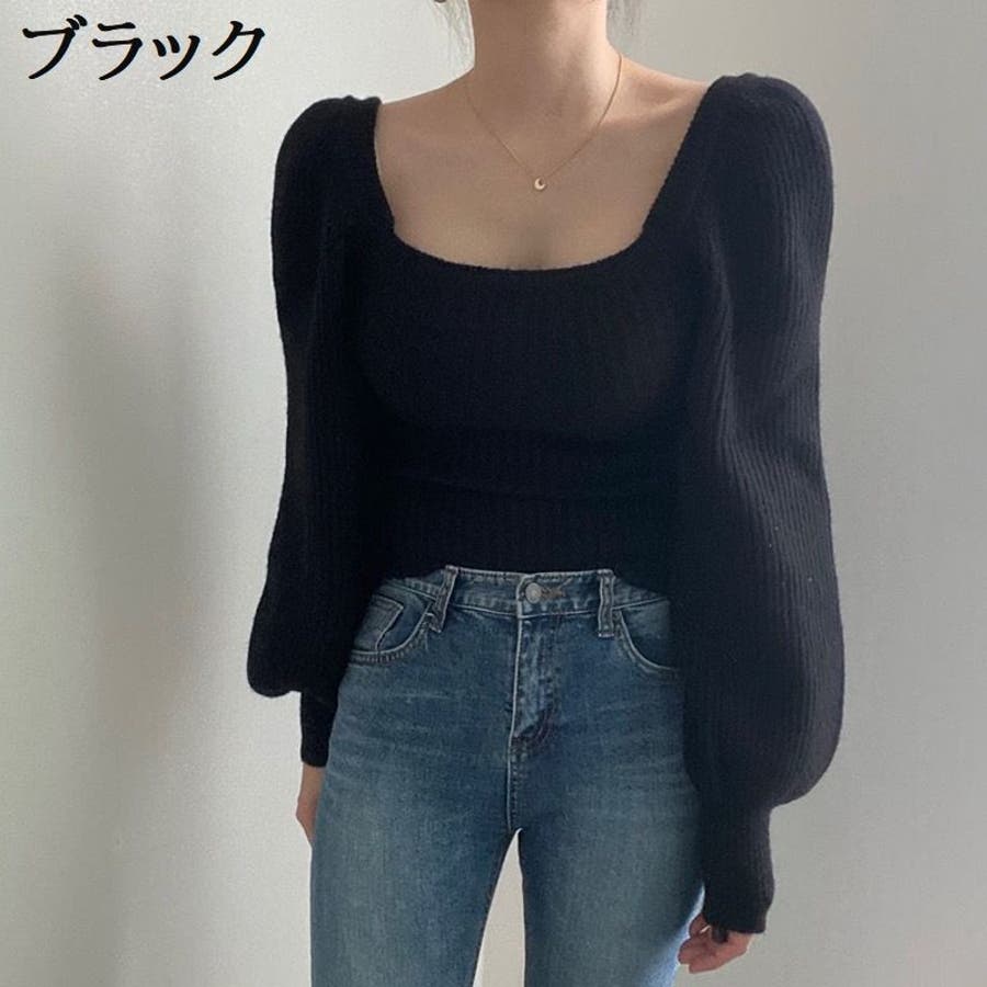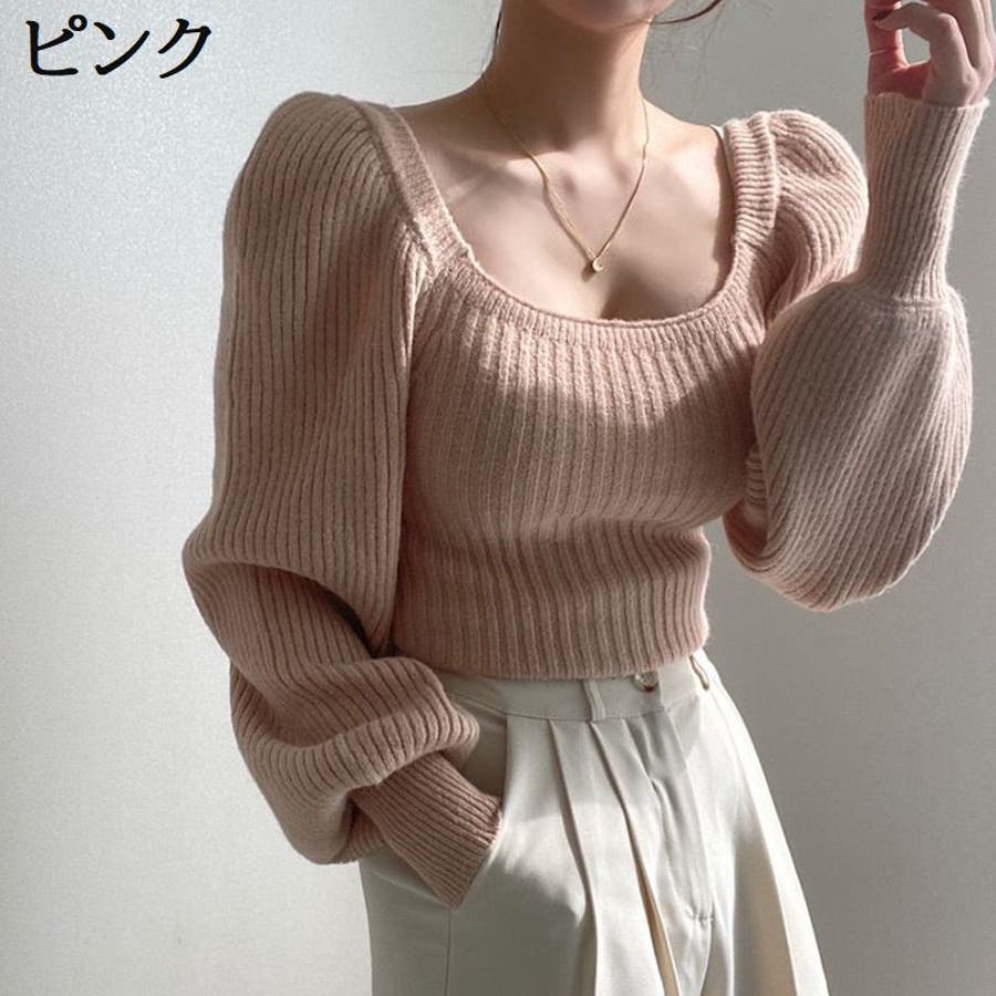 ボリュームのある袖に、スクエアネックのおしゃれなデザインです♪