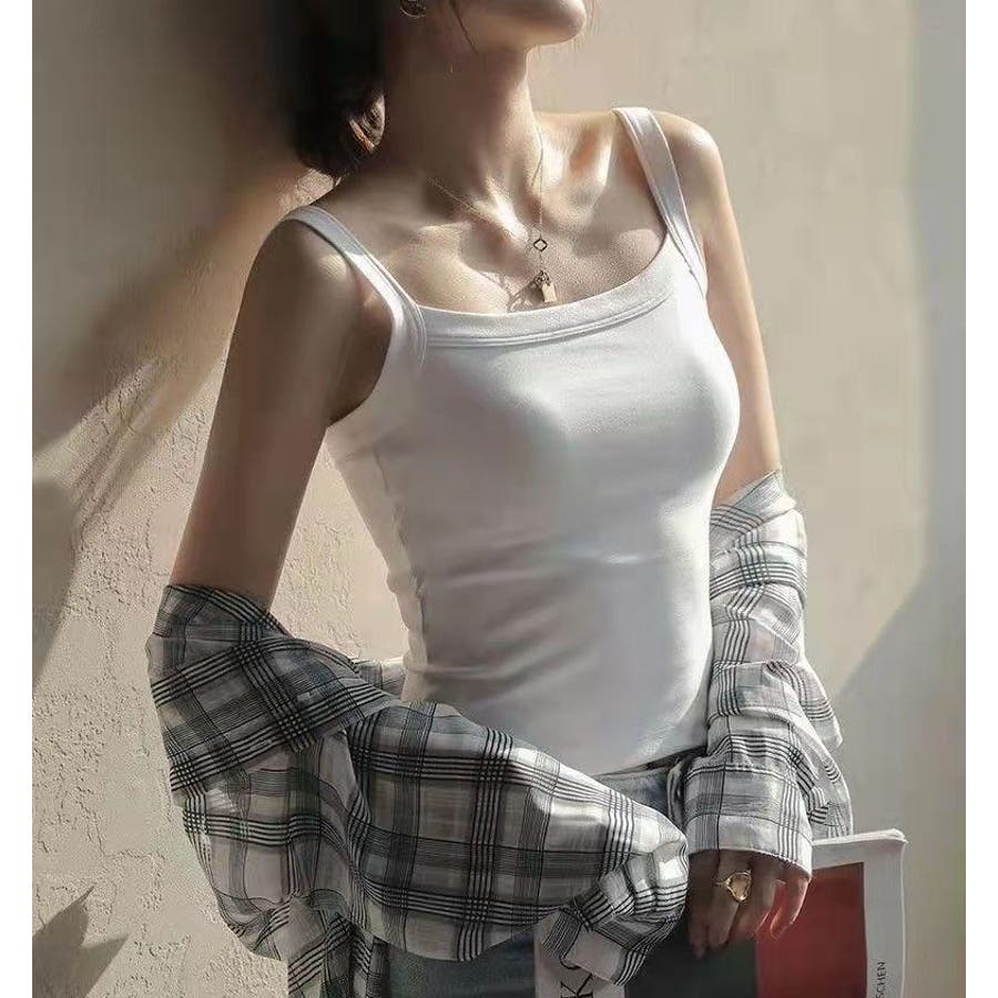 シアーニットやスキッパーシャツの下に着るのに、直線的なカットのタンクトップが欲しくて購入。
