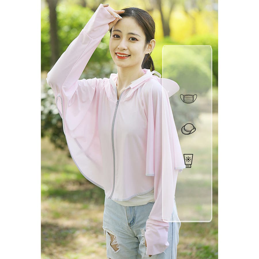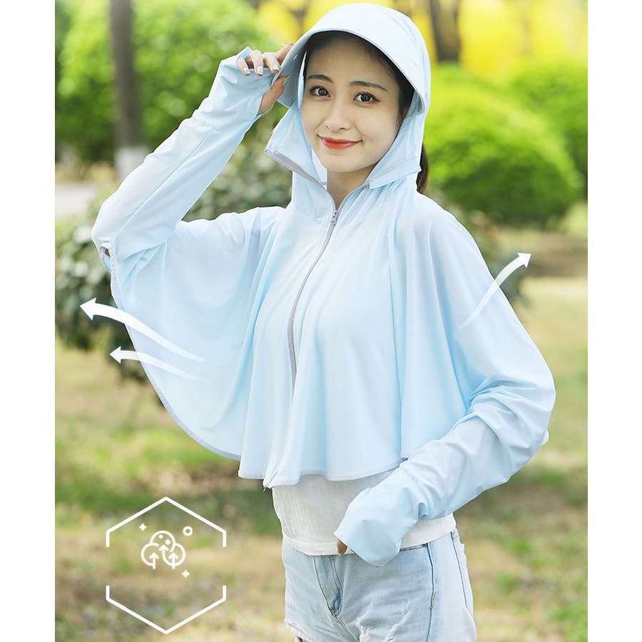幅広のつばがついたフード付きラッシュガードです。