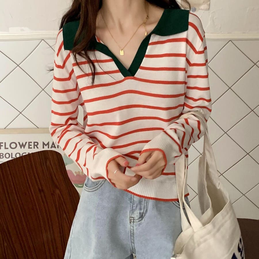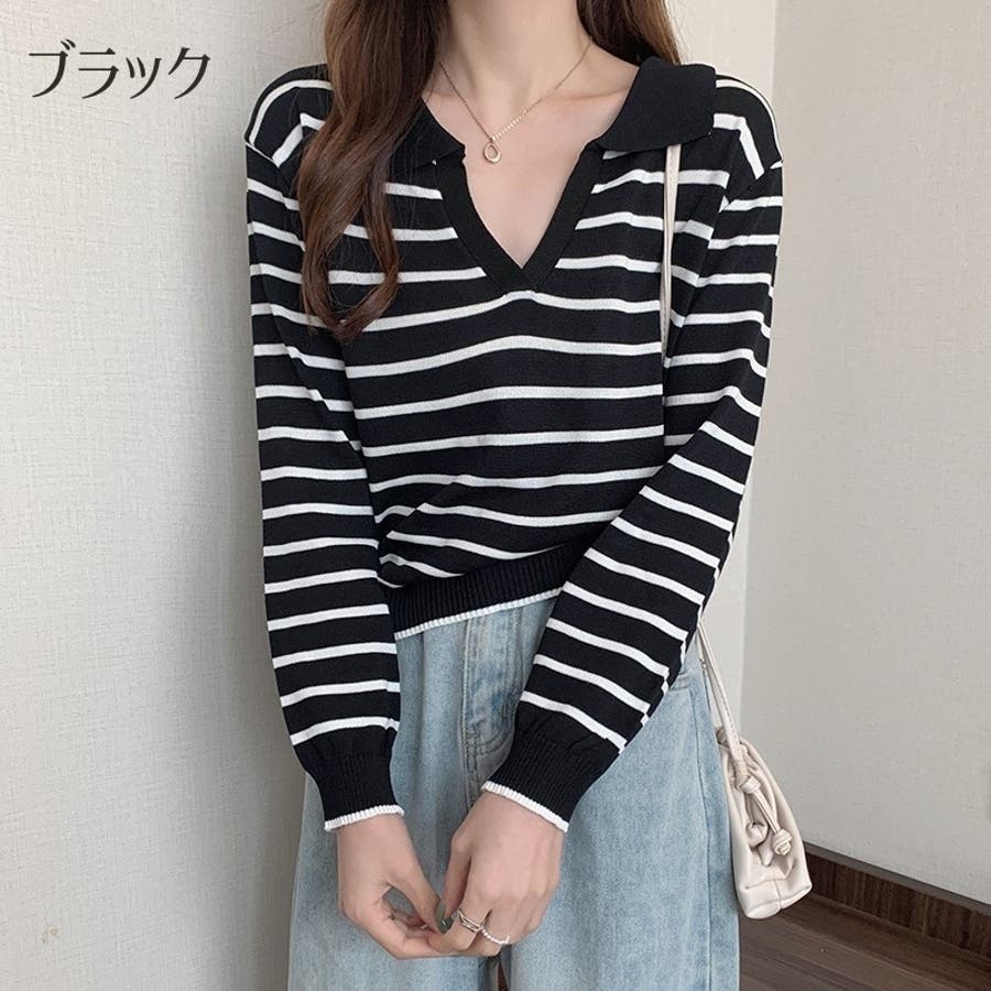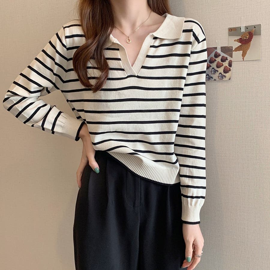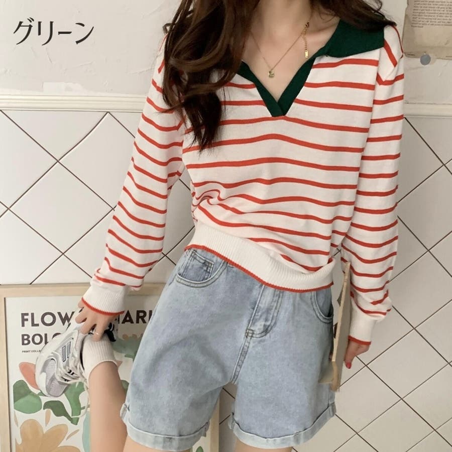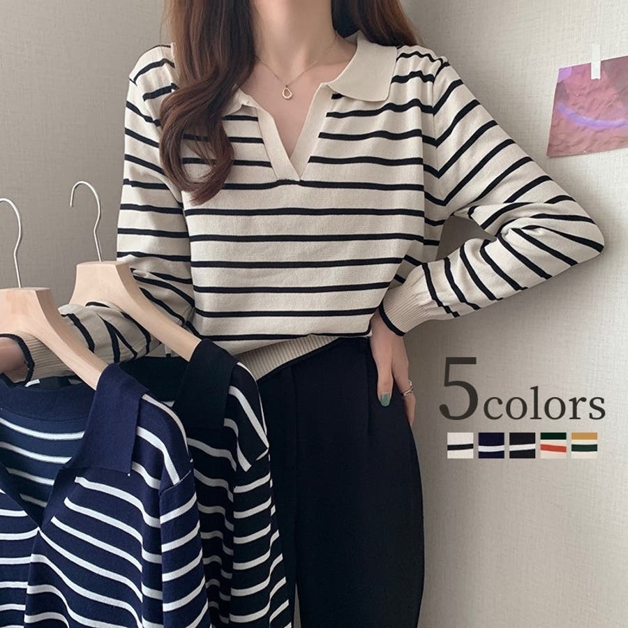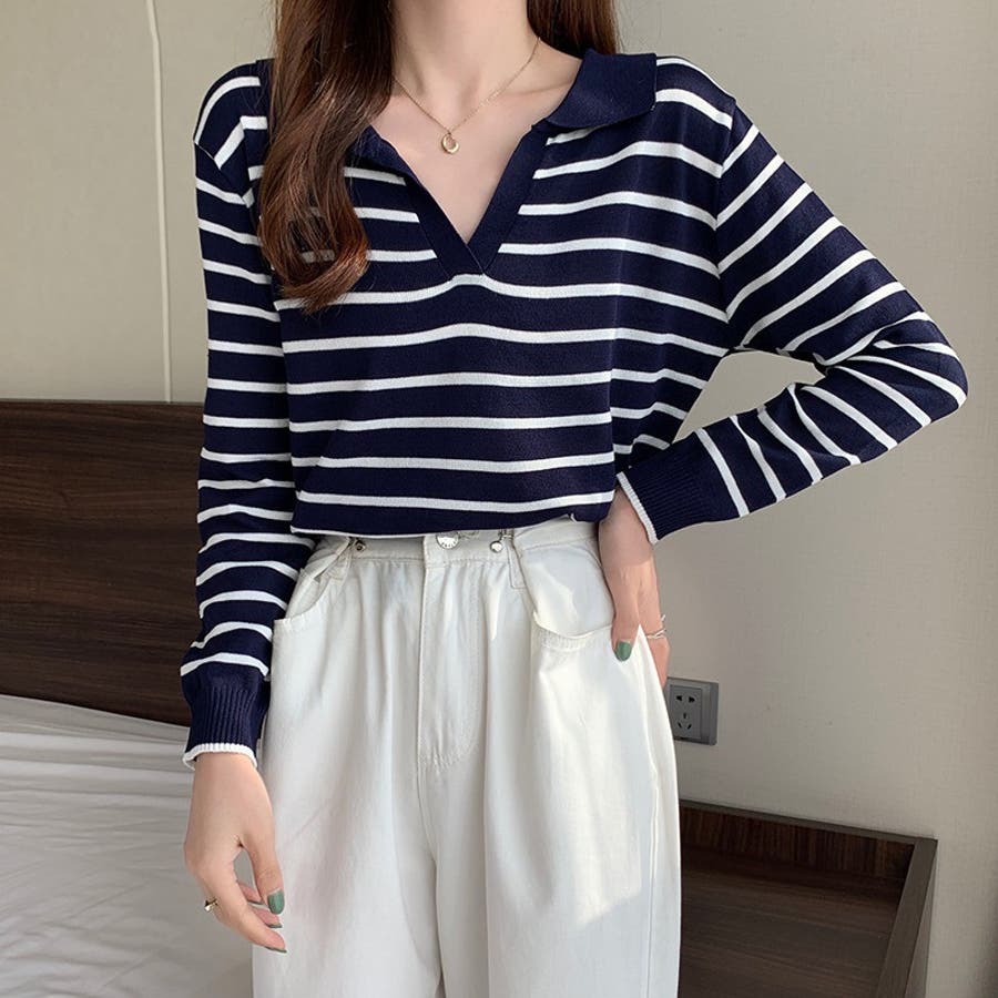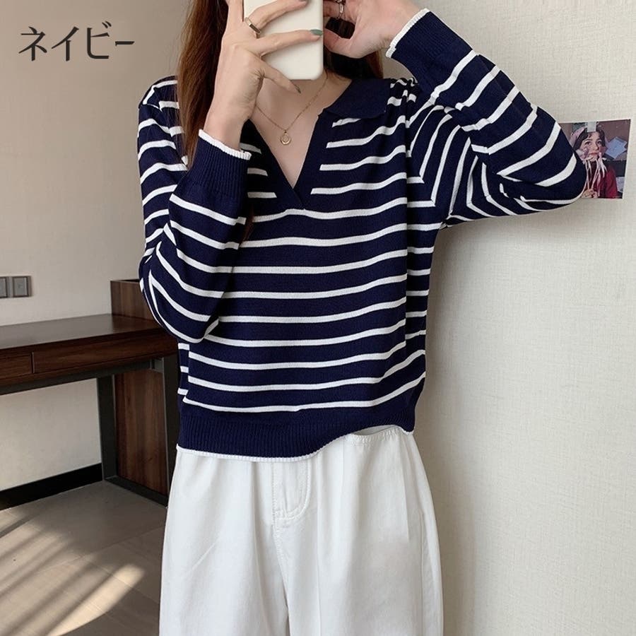 ニット 長袖 スキッパー