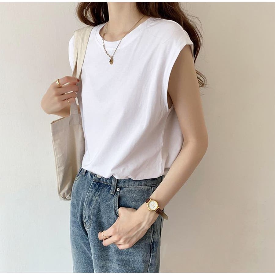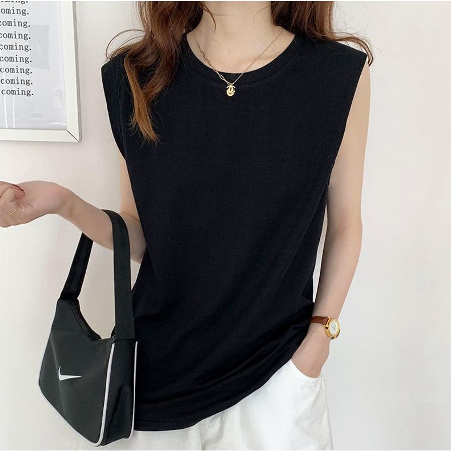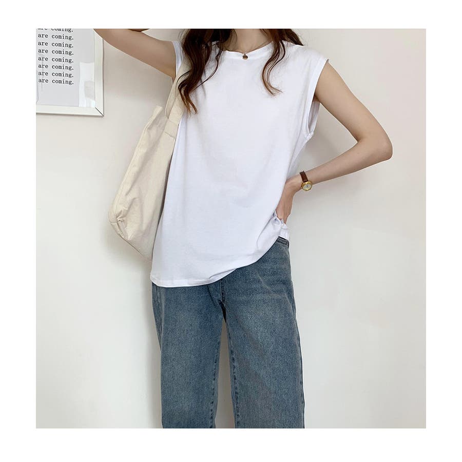Tシャツ生地でさらりと着られるノースリーブのレディースカットソー。