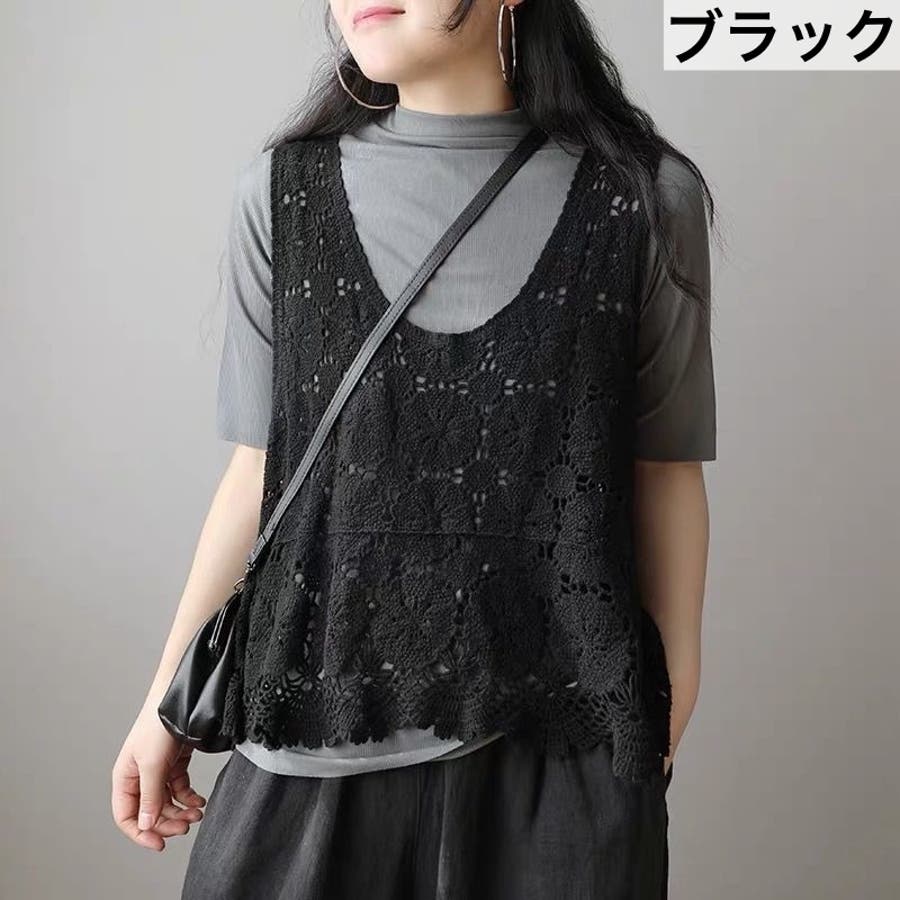 ベスト プルオーバー 透かし編み
