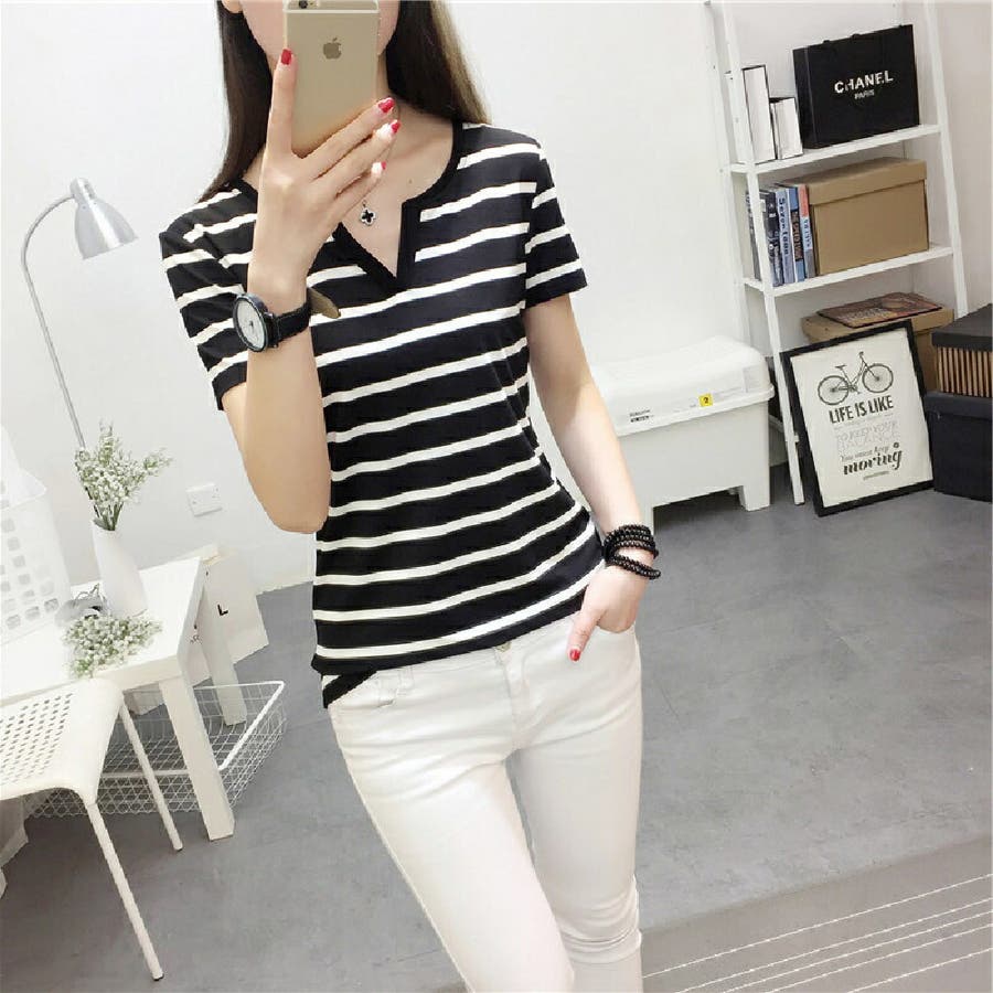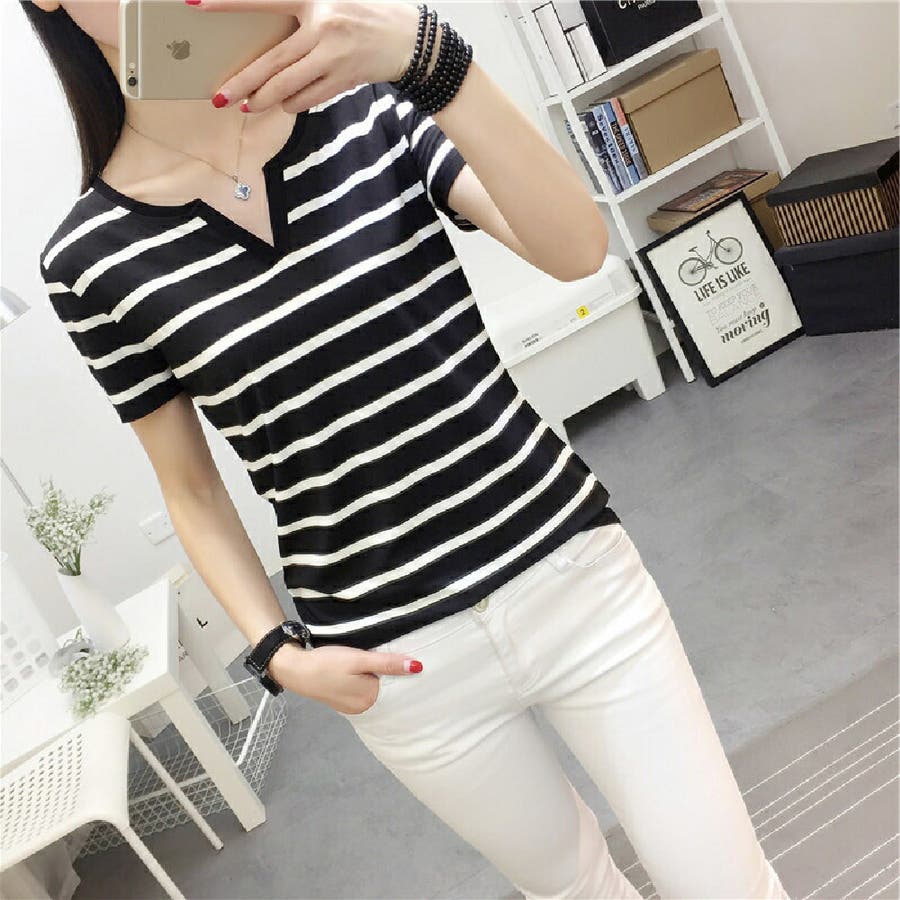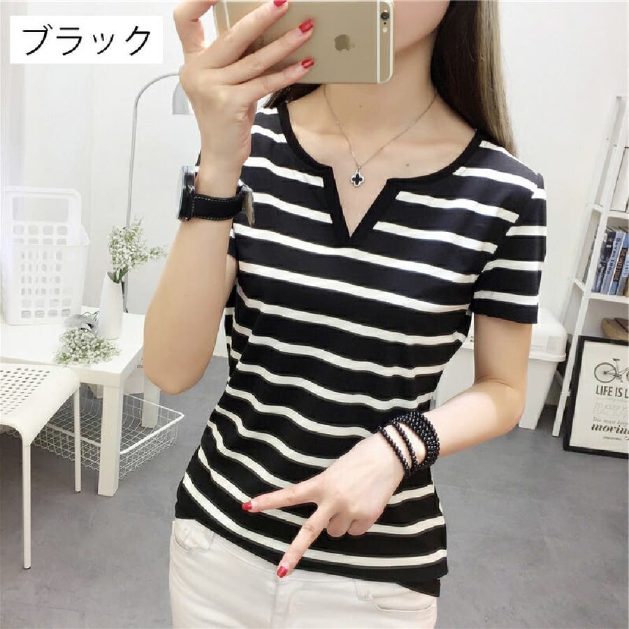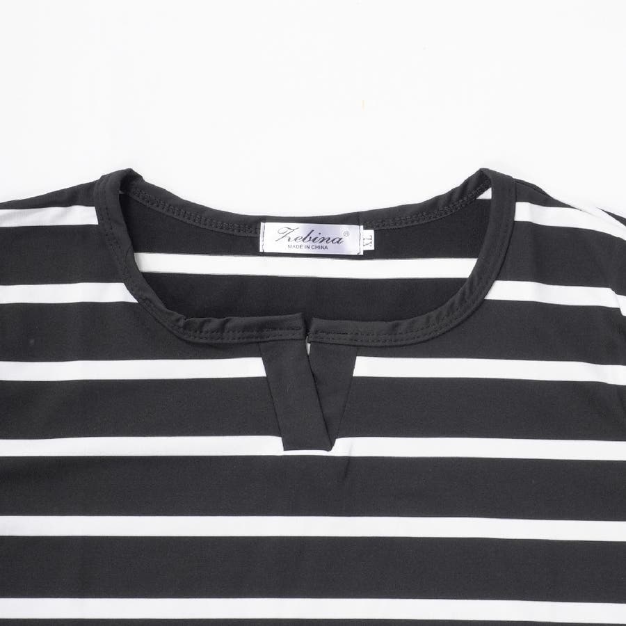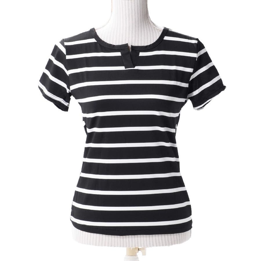 カットソー Tシャツ 半袖 レディース ボーダー しましま キーネック スキッパー 大きいサイズ有 トップス おしゃれ 定番 カジュアル デイリー シンプル 普段使い 着回し モノトーン ..