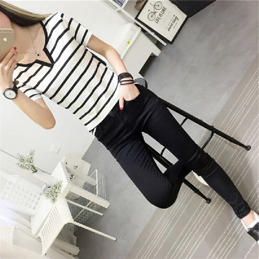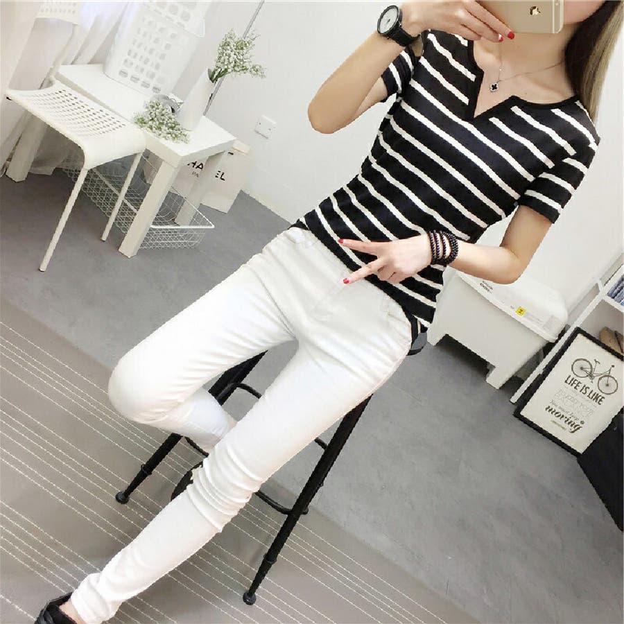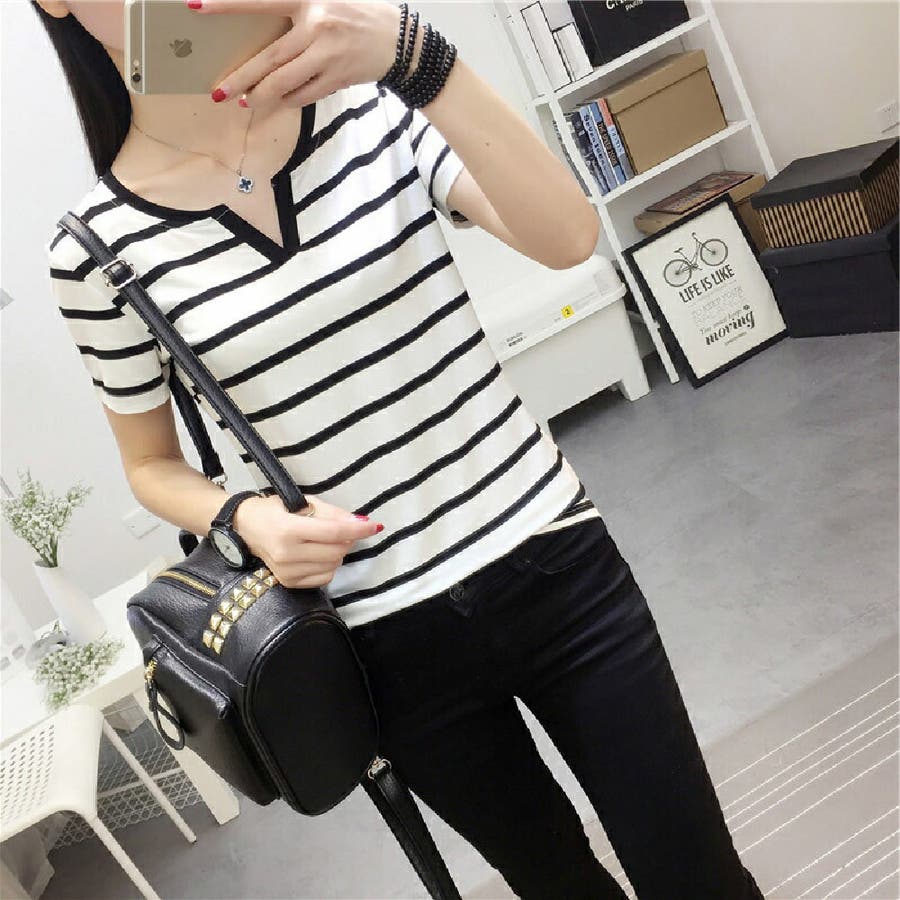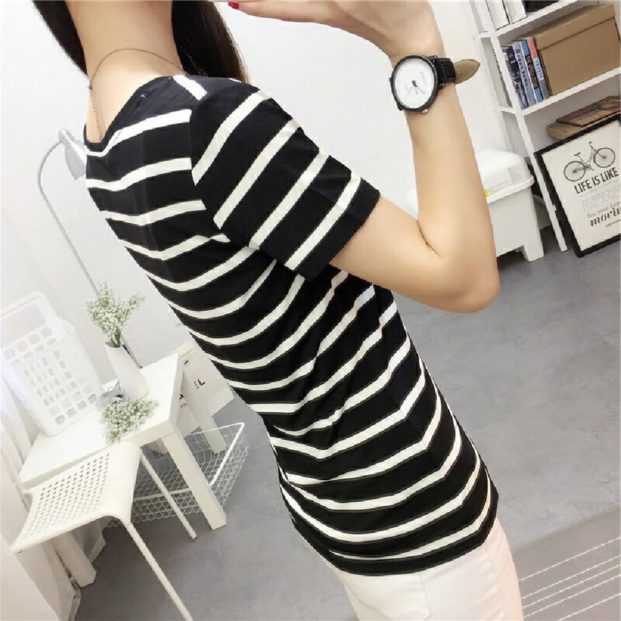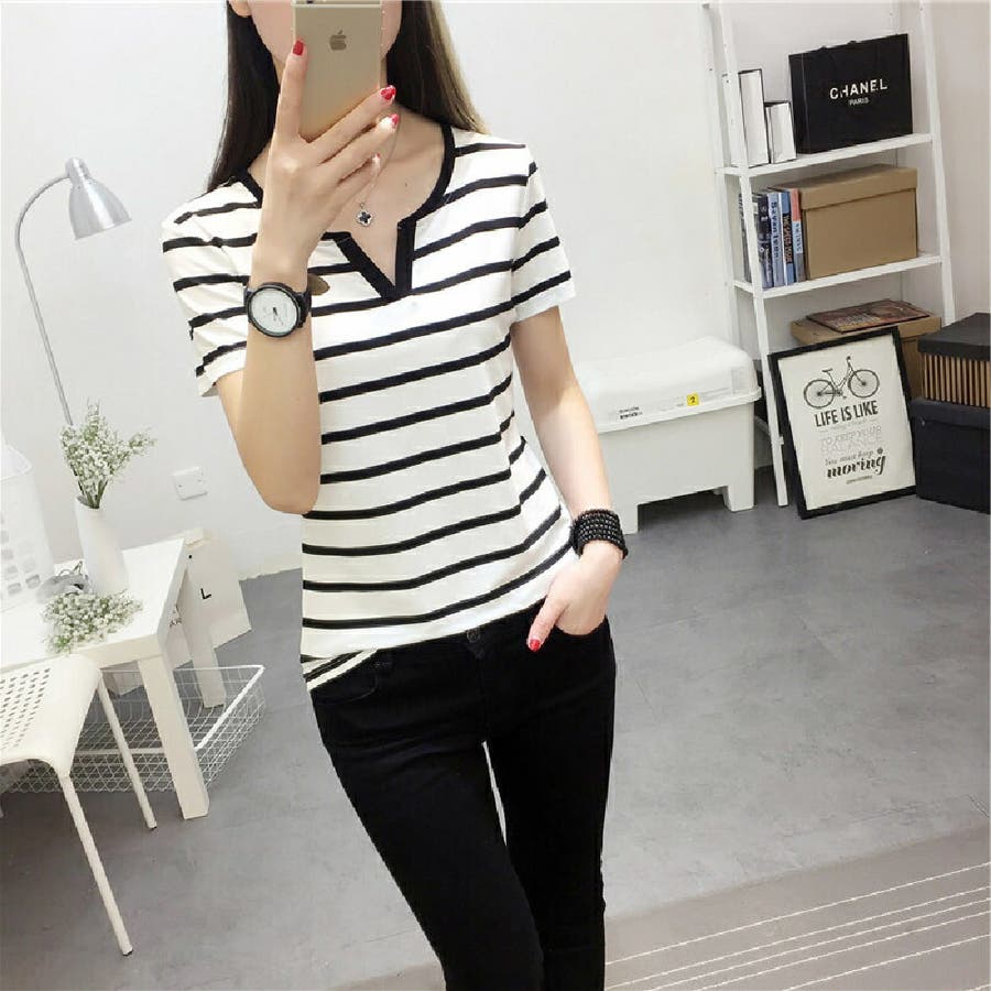 カットソー Tシャツ 半袖 レディース ボーダー しましま キーネック スキッパー 大きいサイズ有 トップス おしゃれ 定番 カジュアル デイリー シンプル 普段使い 着回し モノトーン ..