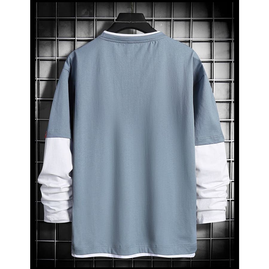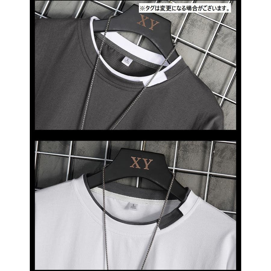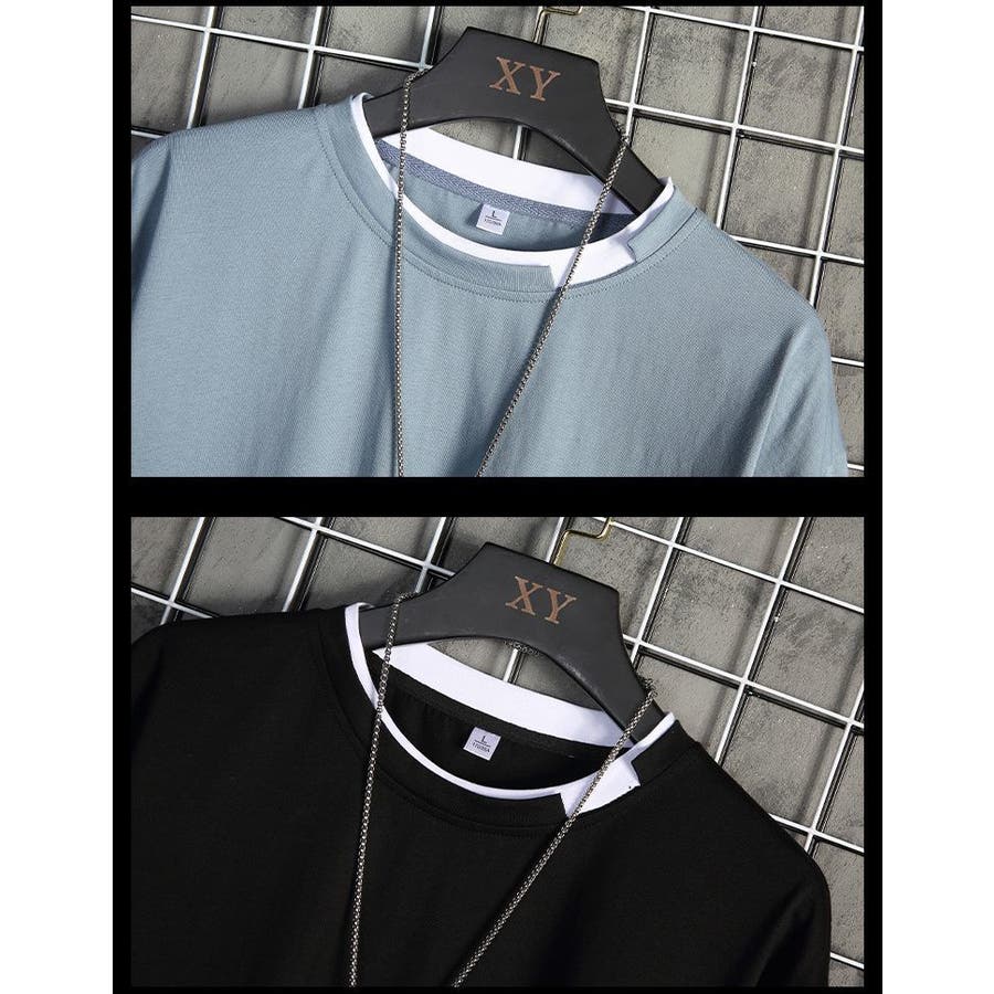重ね着風デザインがおしゃれなメンズ用長袖カットソーです。